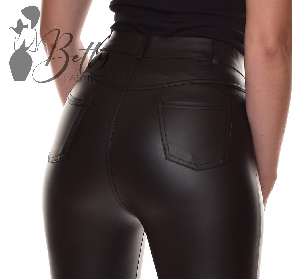 • Fekete színű, derekán gombos és cipzáros, műbőr nadrág