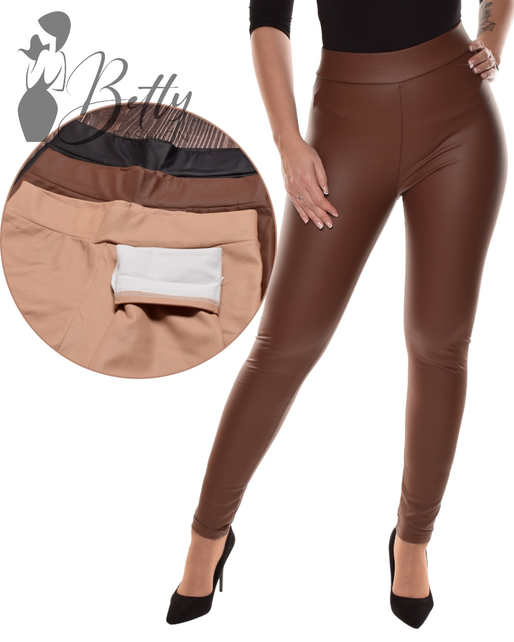 • Gumis derekú, műbőr nadrág