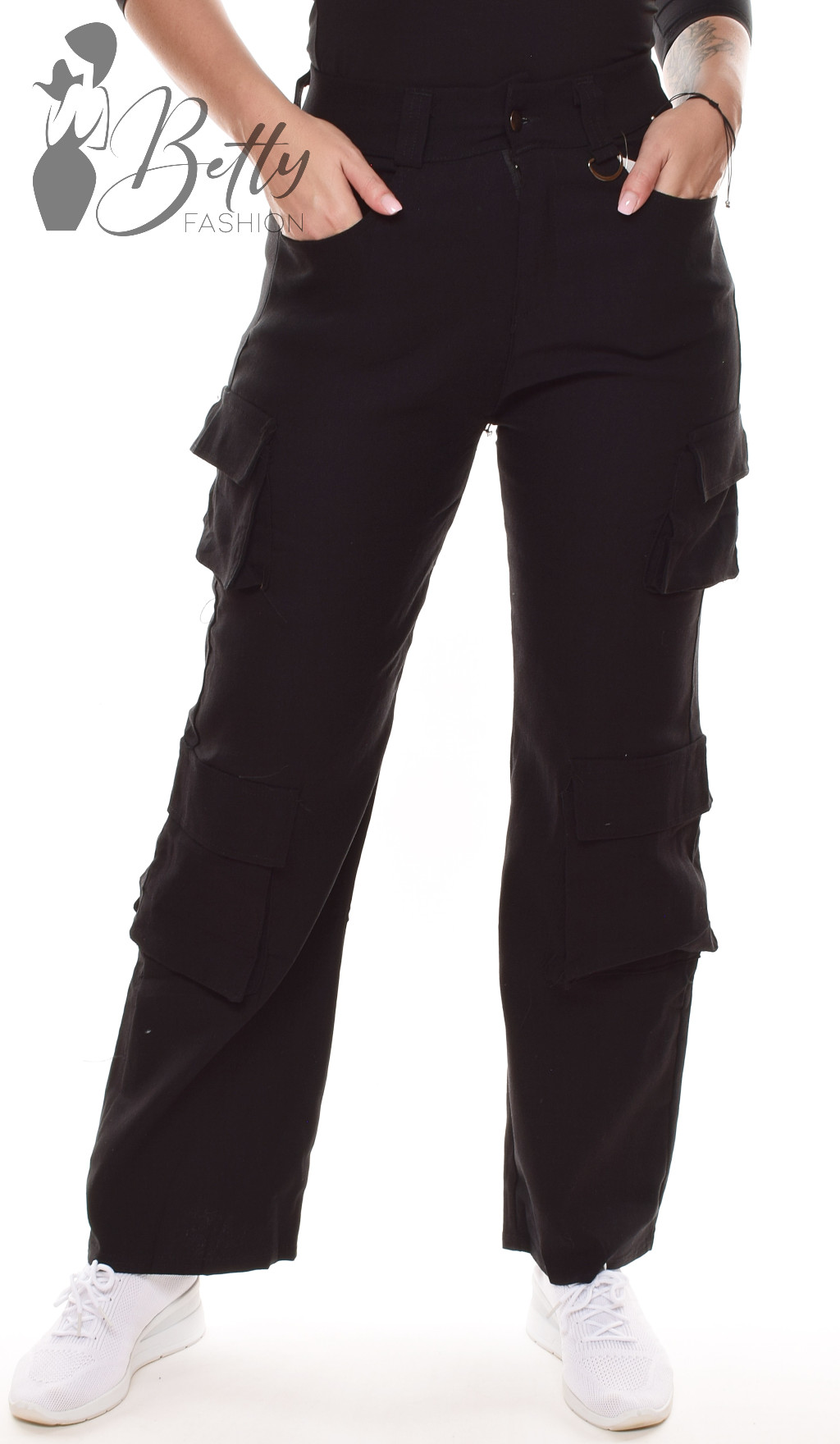 • Egyszínű, két oldalt zsebes és oldal zsebes, bő szárú nadrág