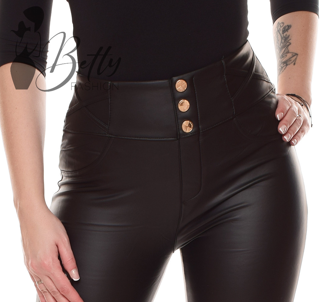 Polárbélelt, díszgombos, műbőr nadrág S/M, L/XL, XL/2XL