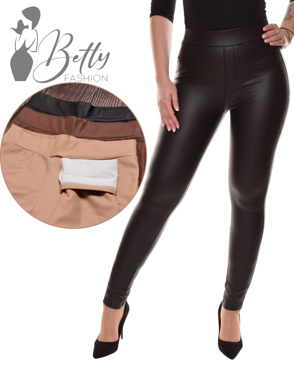 • Gumis derekú, fenekén zsebes, elől álzsebes, műbőr nadrág