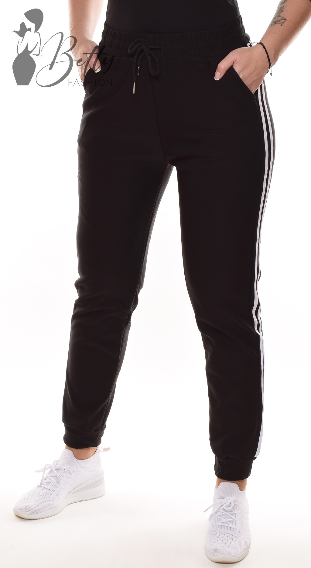 • Egyszínű, oldalt dupla csíkos, gumis és megkötős derekú melegítő nadrág