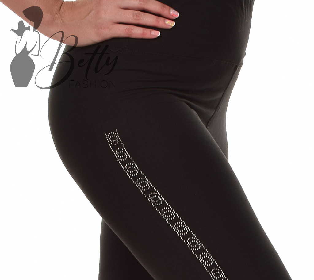 Két oldalt strasszköves, fekete legging S/M, L/XL, XL/2XL, 3XL/4XL, 5XL/6XL