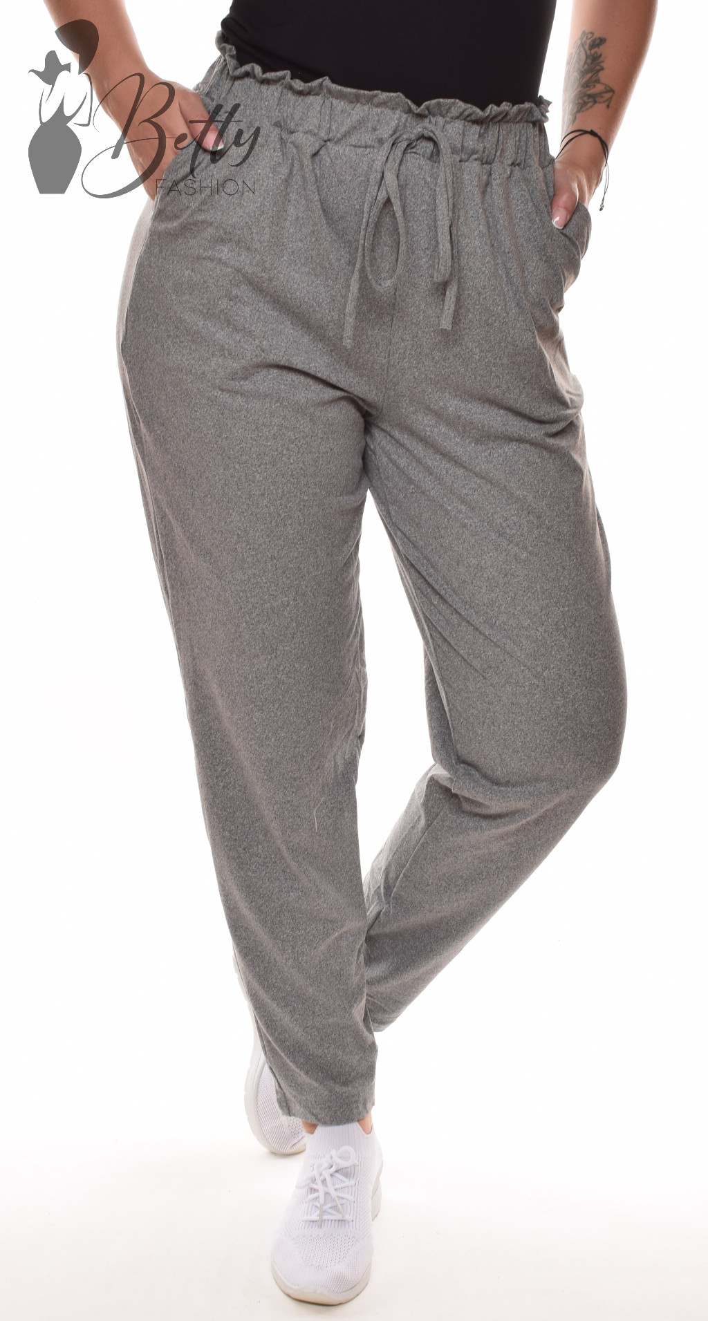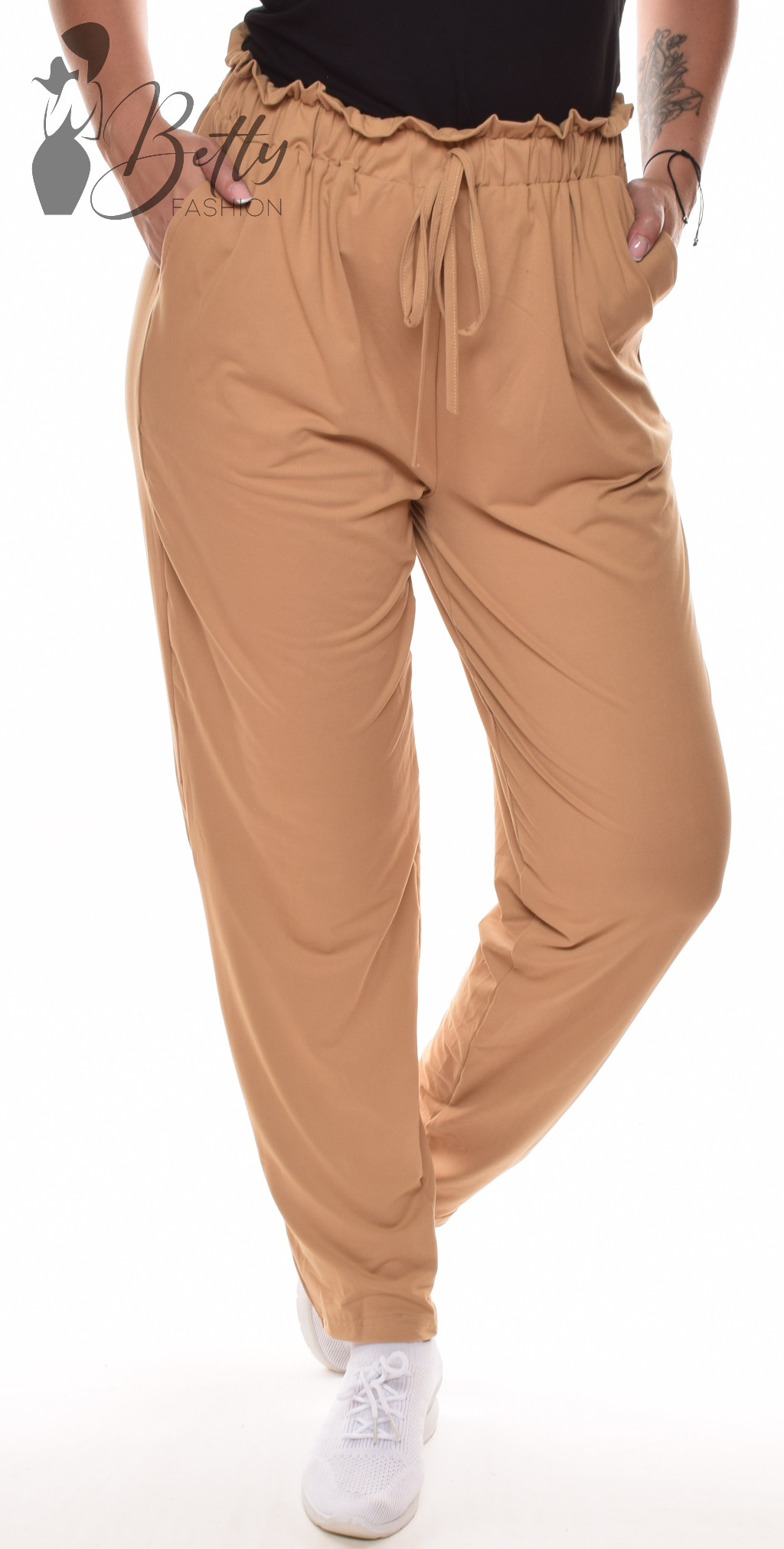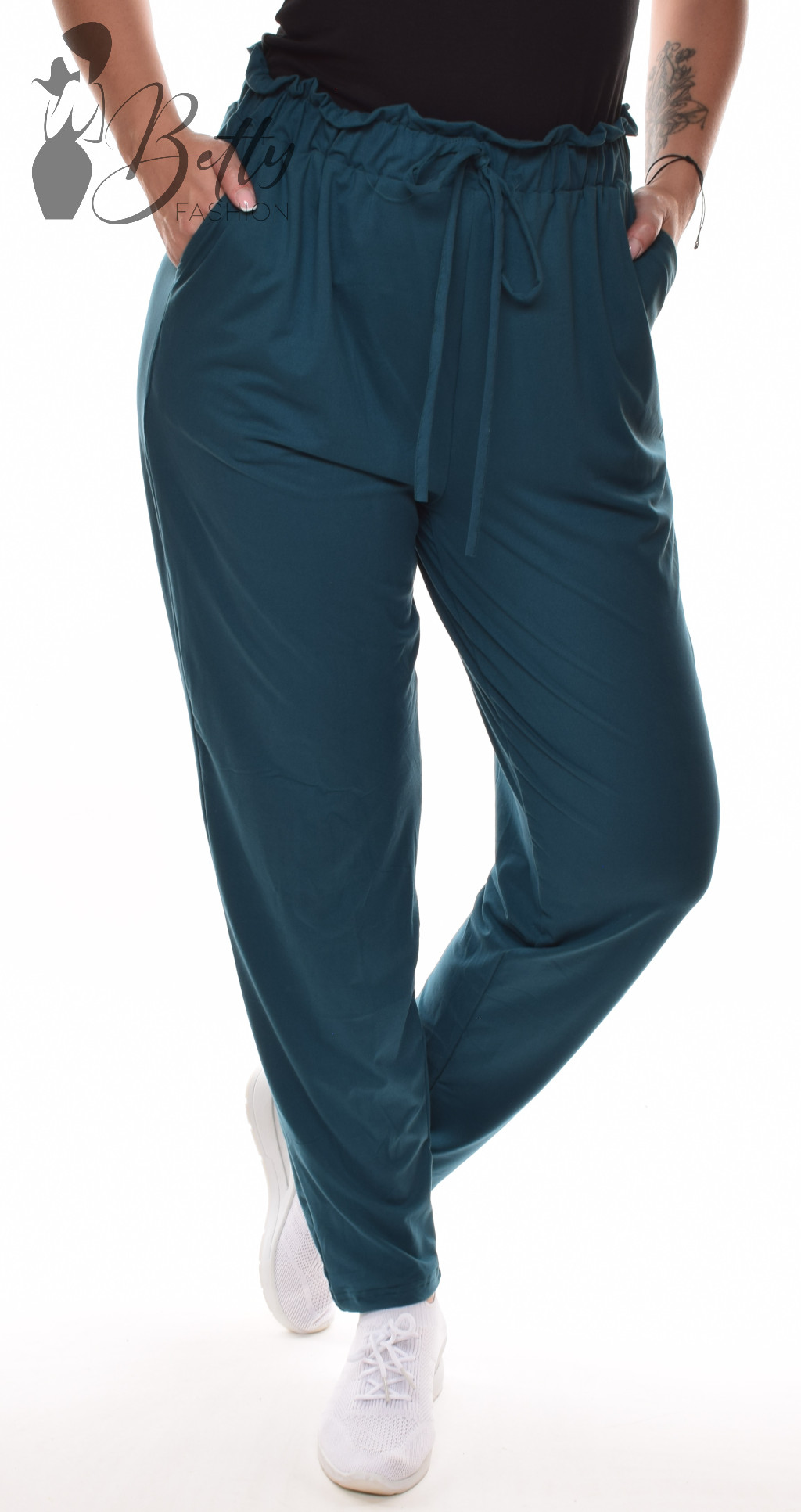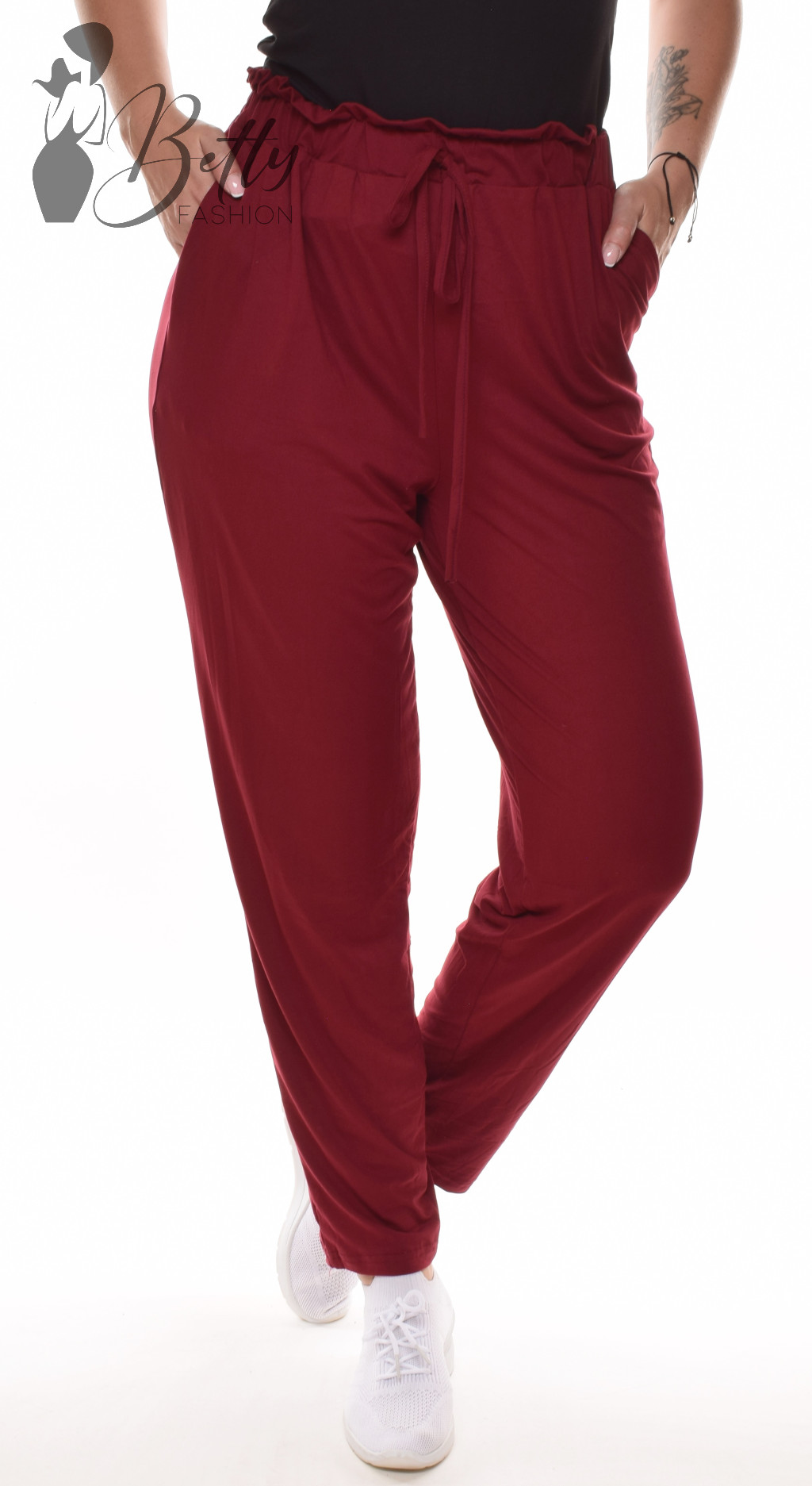 • Egyszínű, derékban fodros és gumis, laza fazonú nadrág