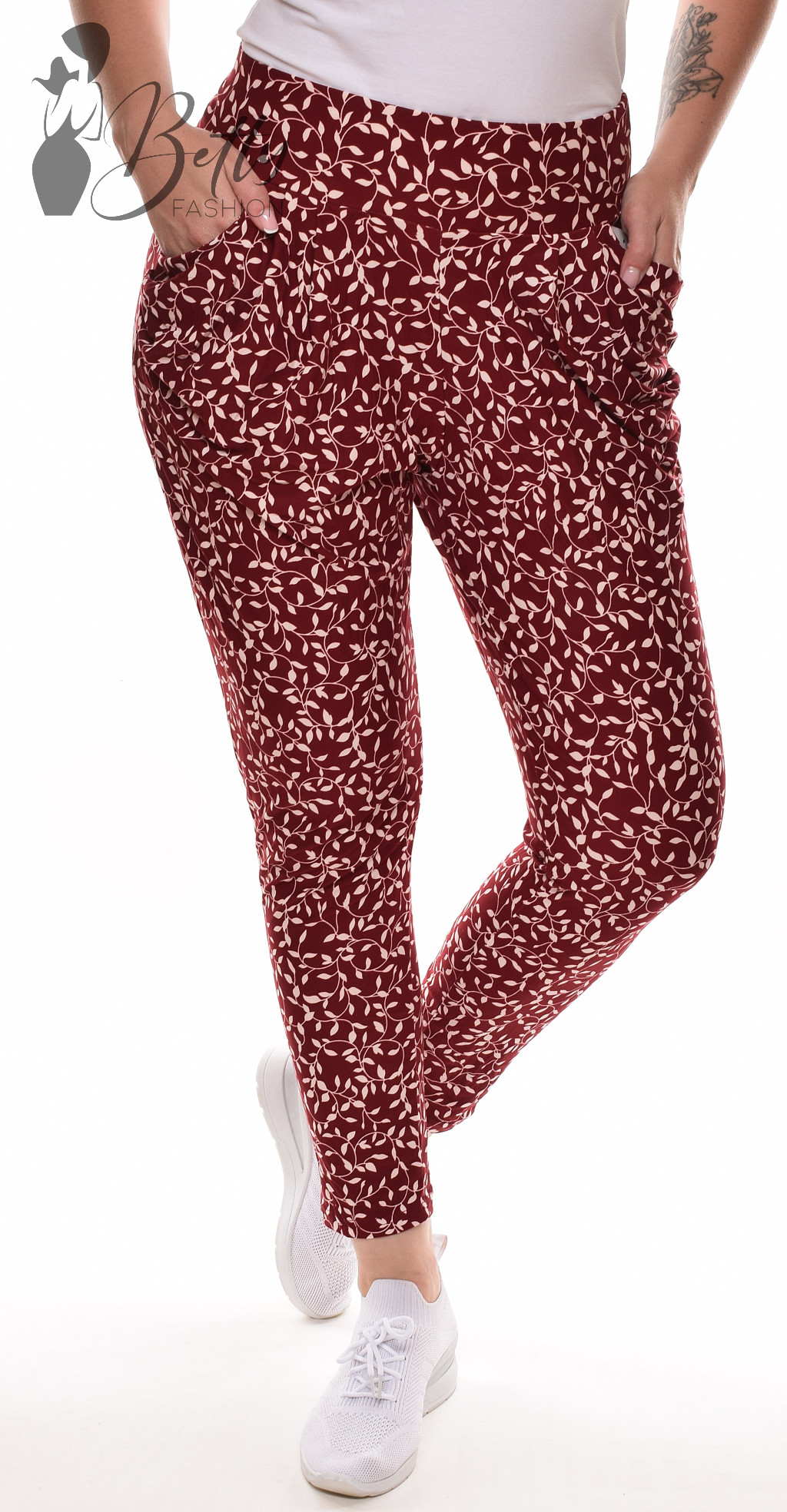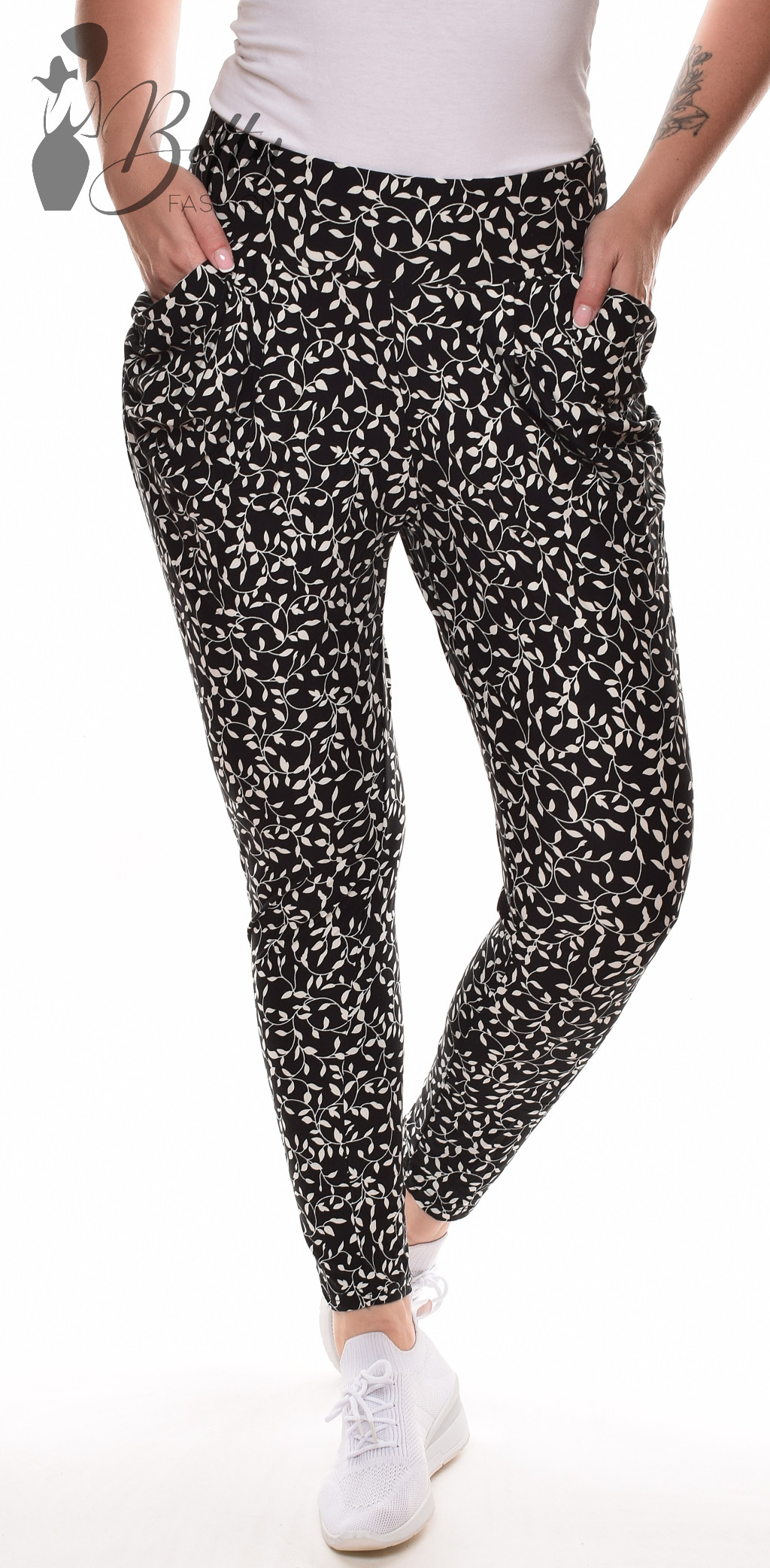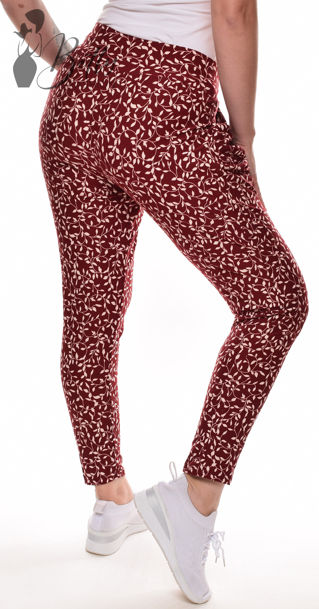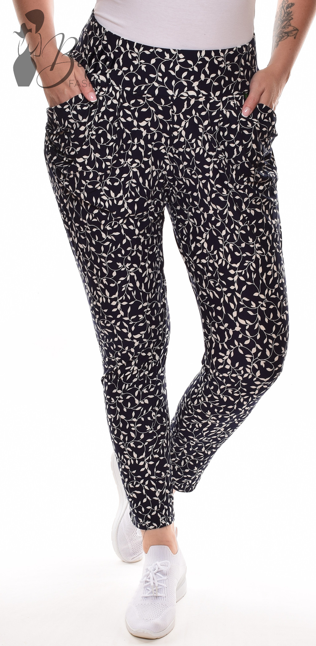 • Apró levél mintás, gumis és rakott derekú, elején zsebes nadrág