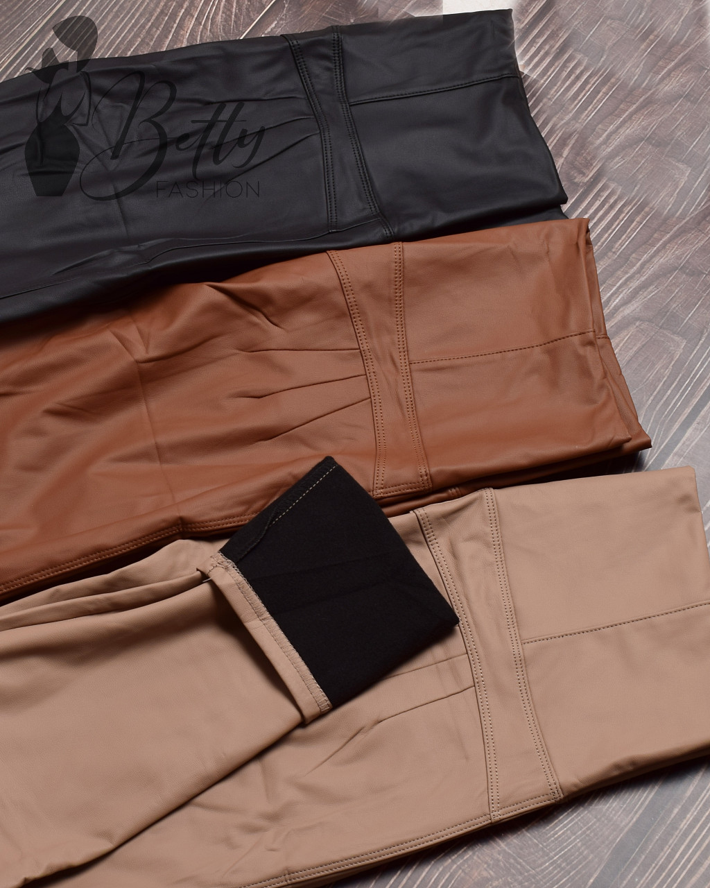 • Széles gumis derekú, fenekén díszvarrásos és push-up szabású, műbőr nadrág