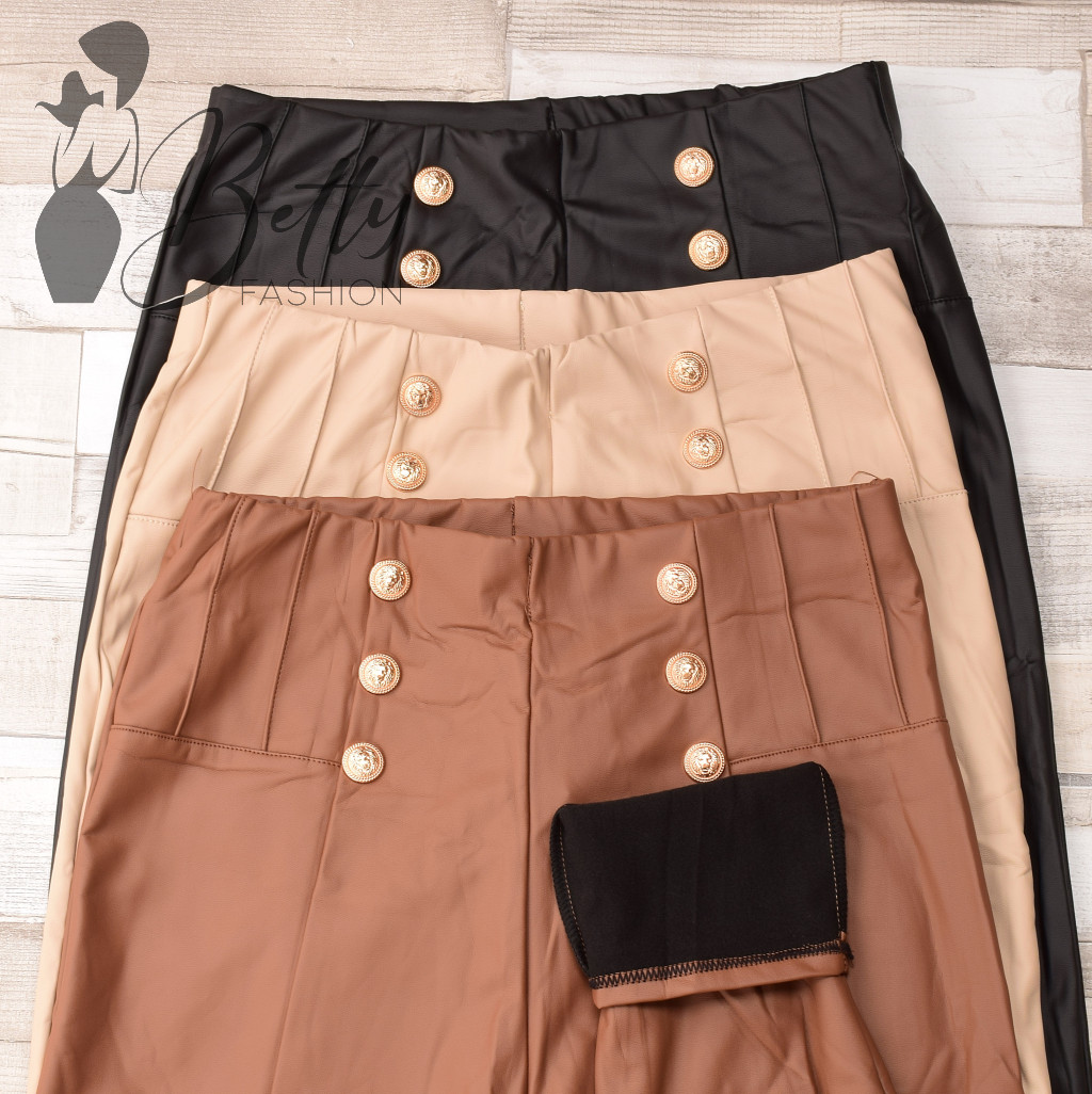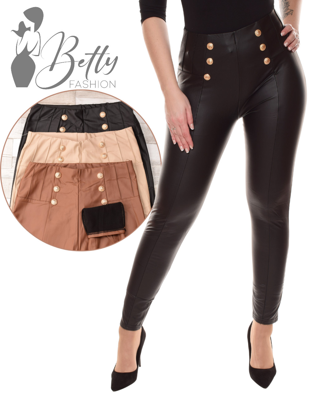 • Díszvarrásos és két oldalt gombdíszes, gumis derekú műbőr nadrág