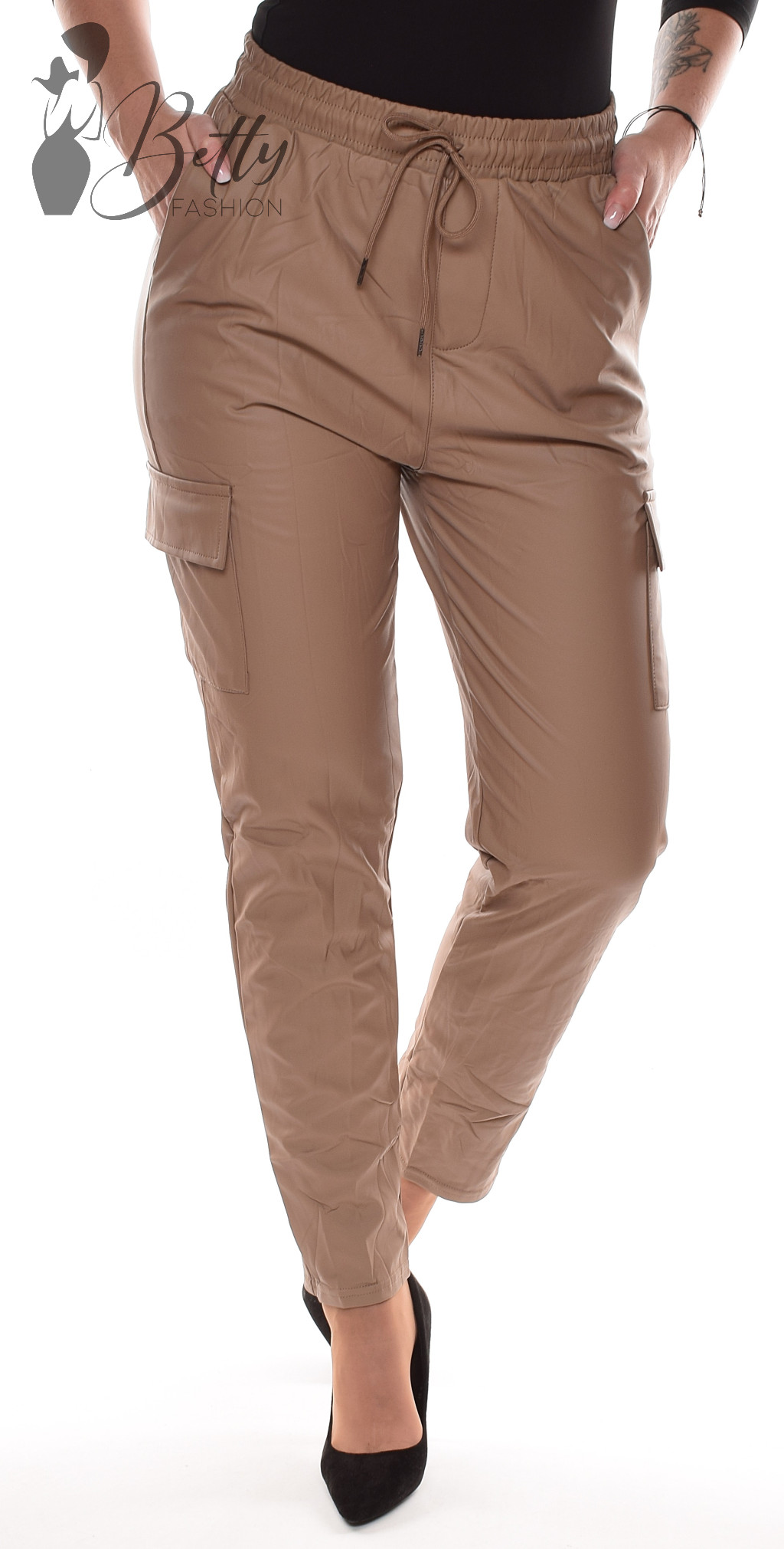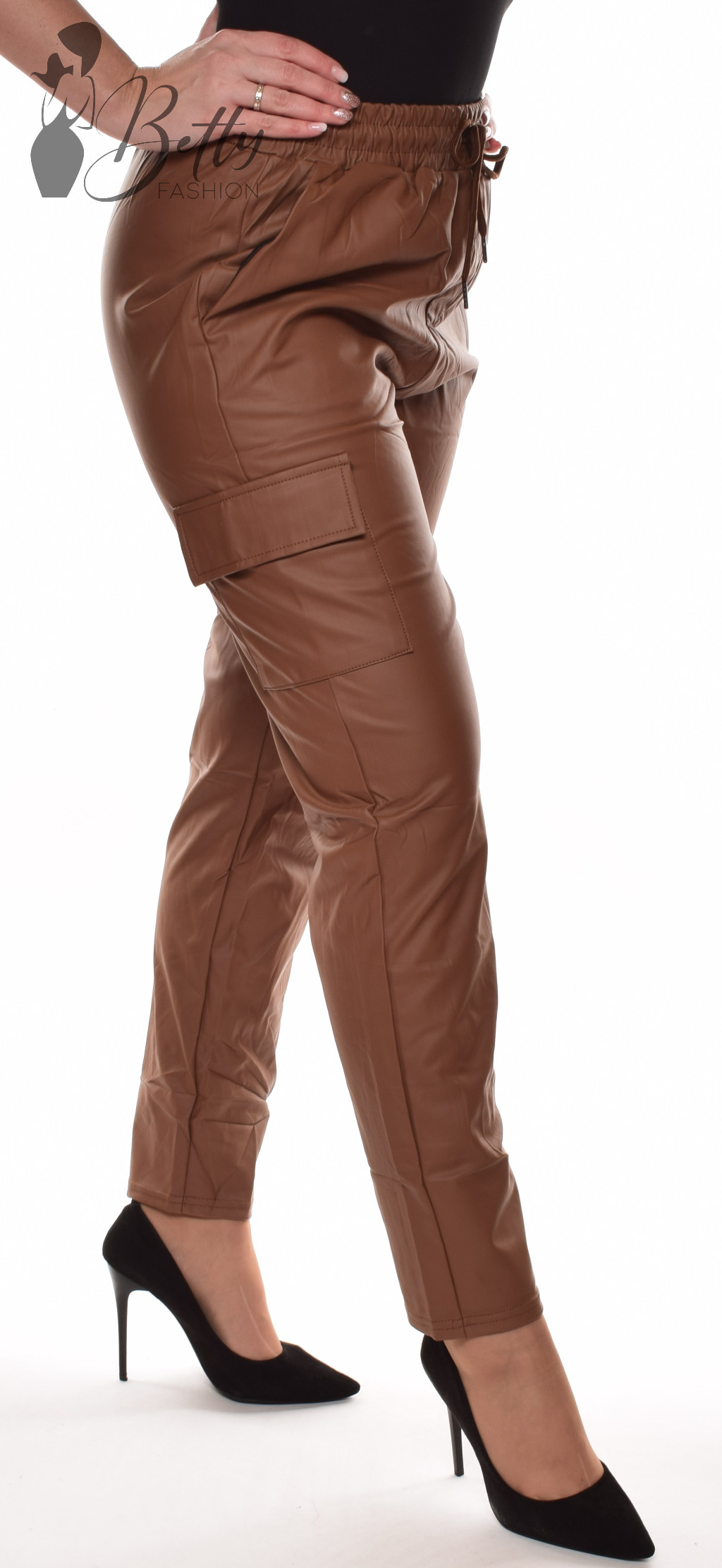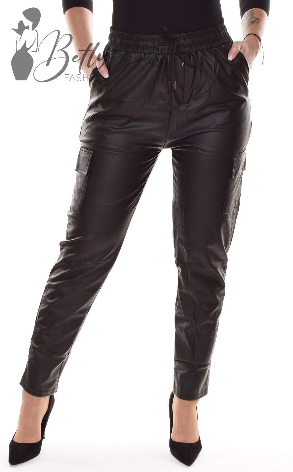 • Gumis és megkötős derekú, oldalzsebes, műbőr nadrág