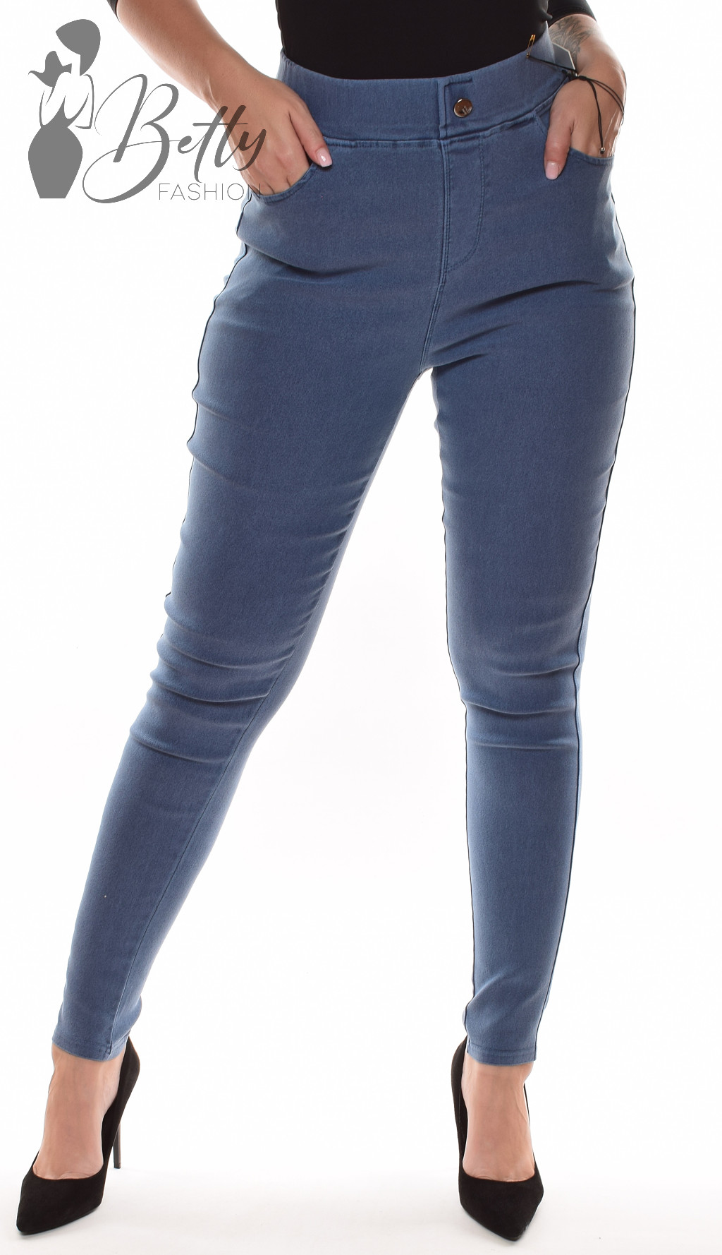 • Elején díszgombos, gumis derekú, farmer hatású nadrág