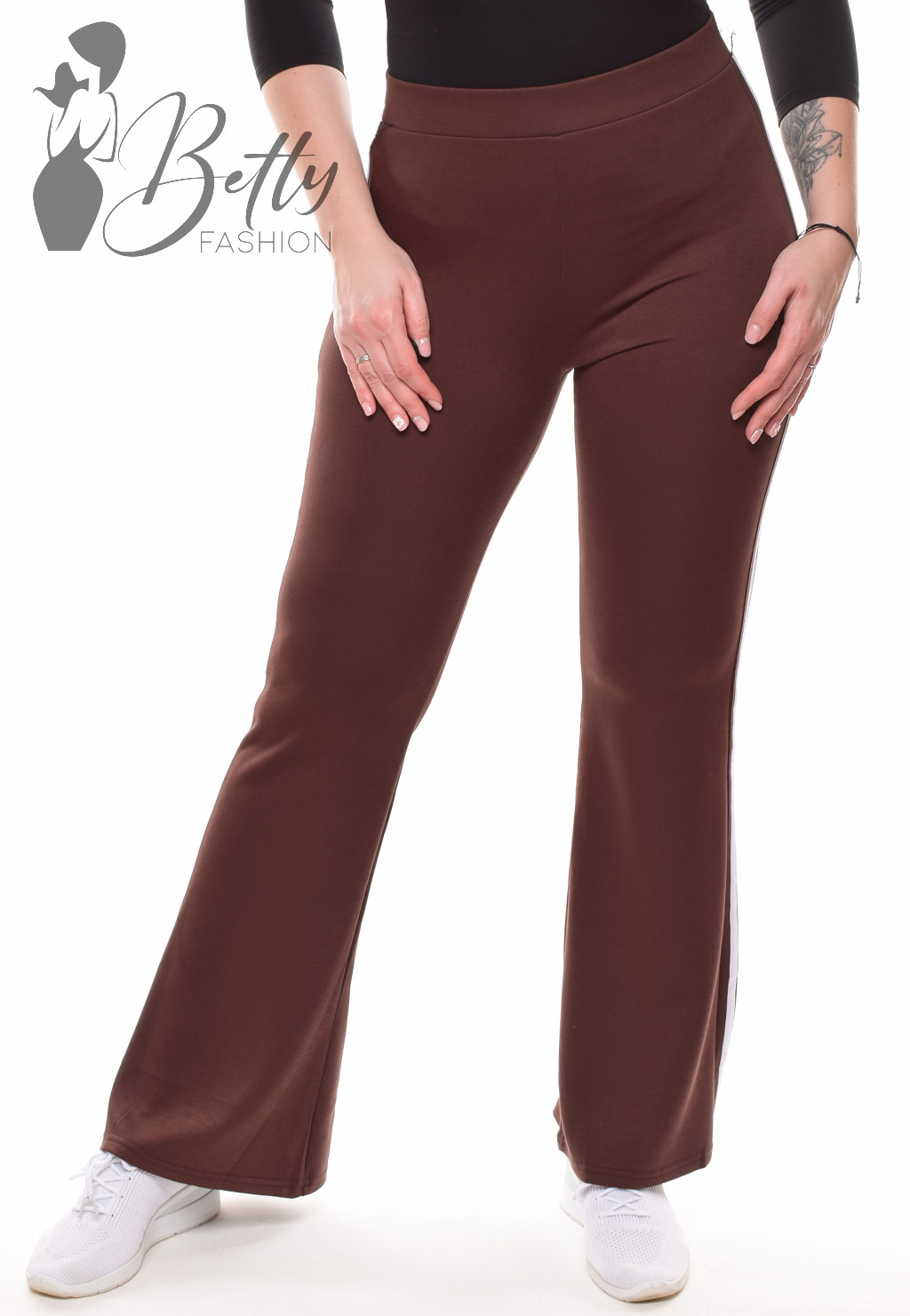 • Gumis derekú, oldalt csíkos, bővülő szárú nadrág