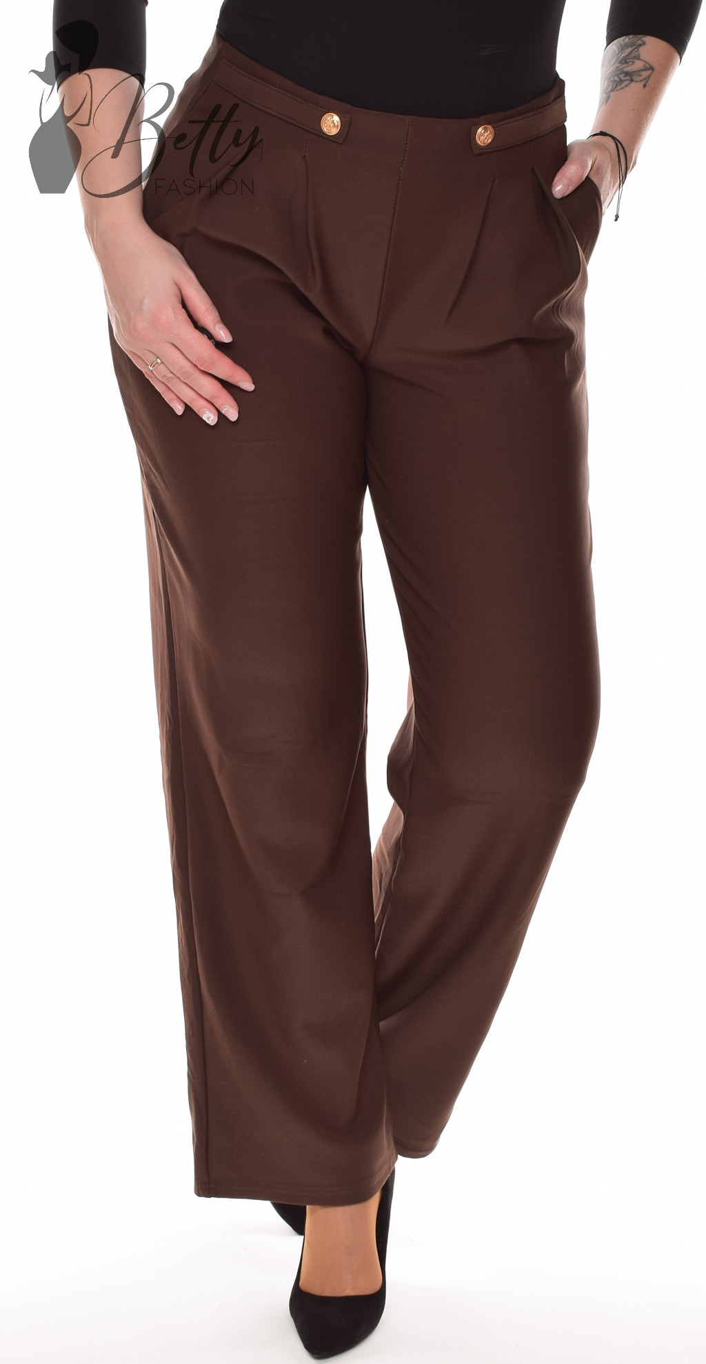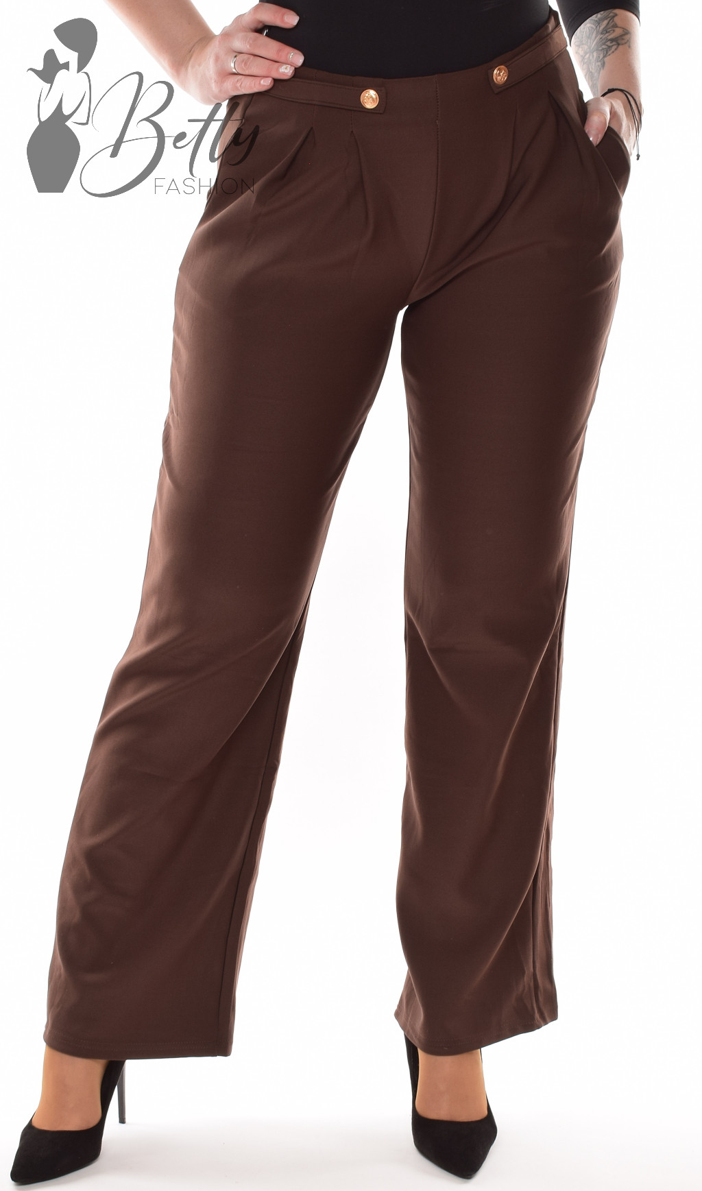 • Gumis derekú, derékban rakott és gombdíszes, bő szárú, elegáns nadrág