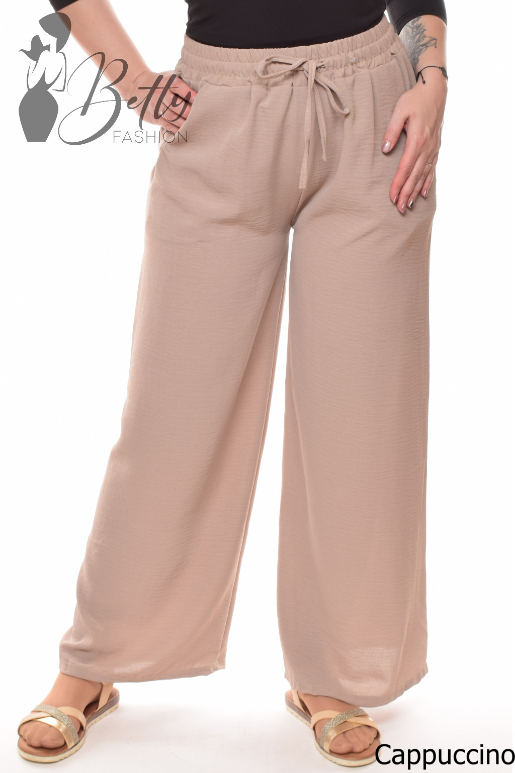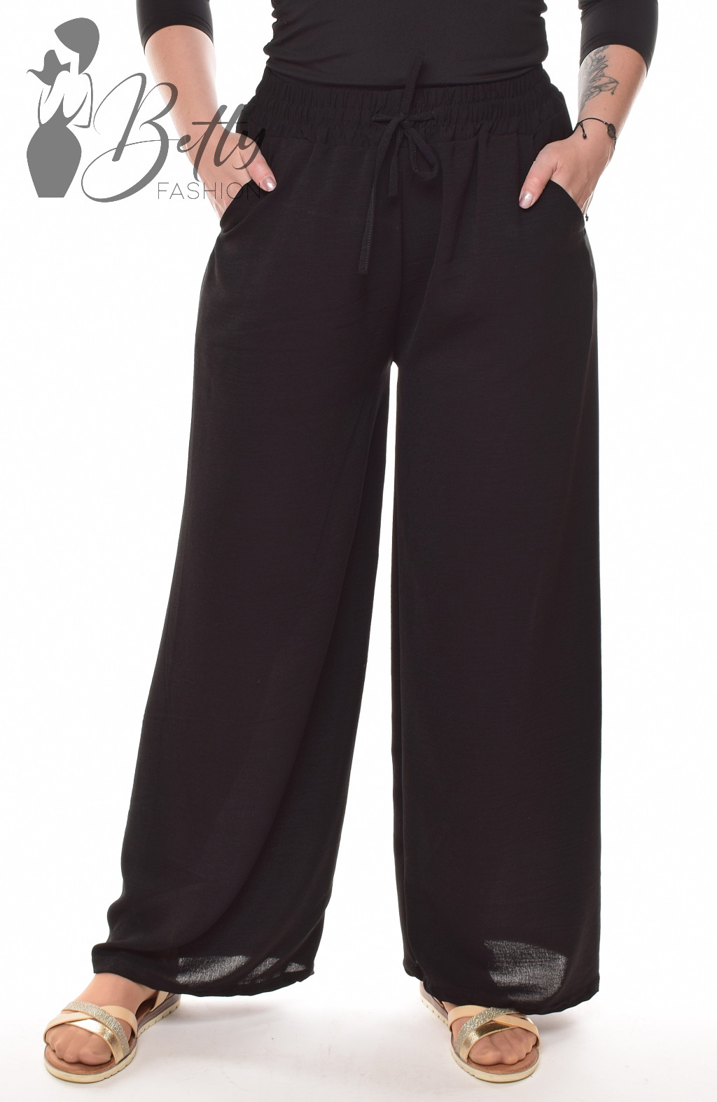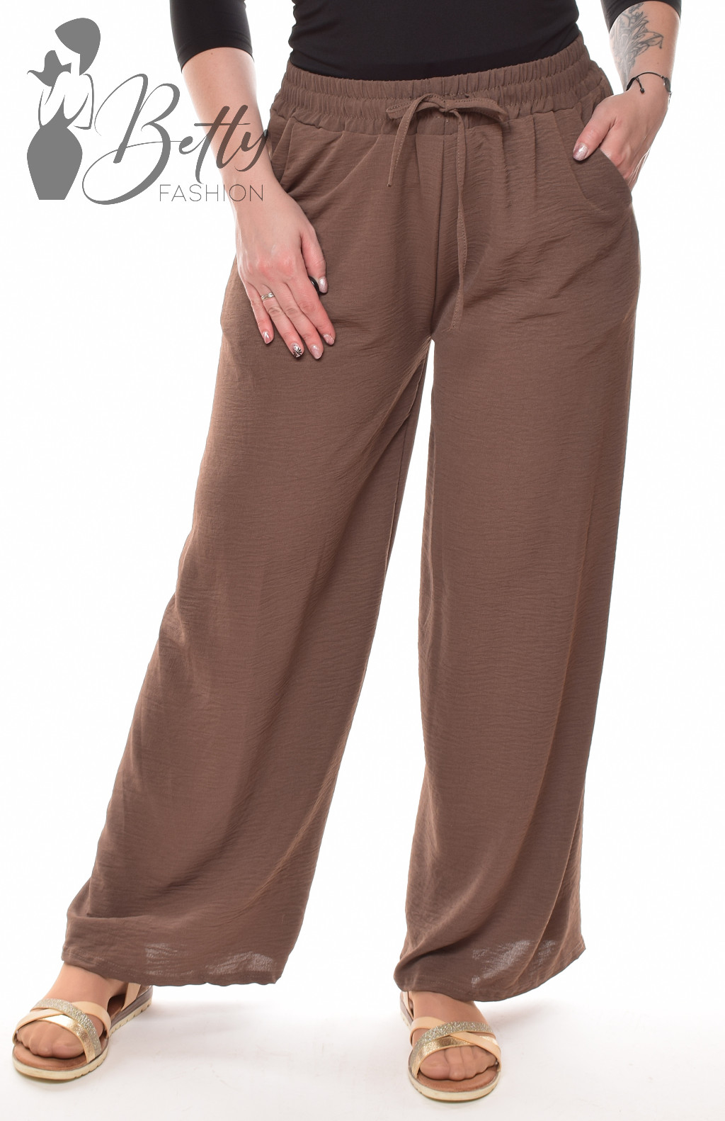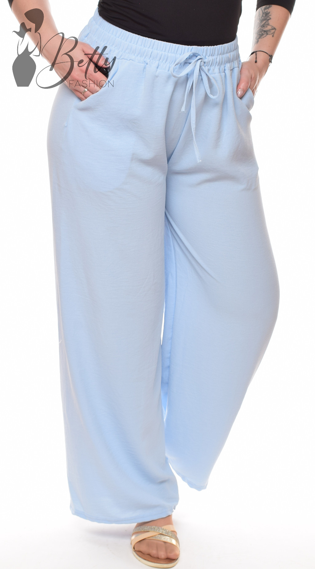 • Egyszínű, gumis és megkötős derekú, zsebes, bő szárú lenge nadrág