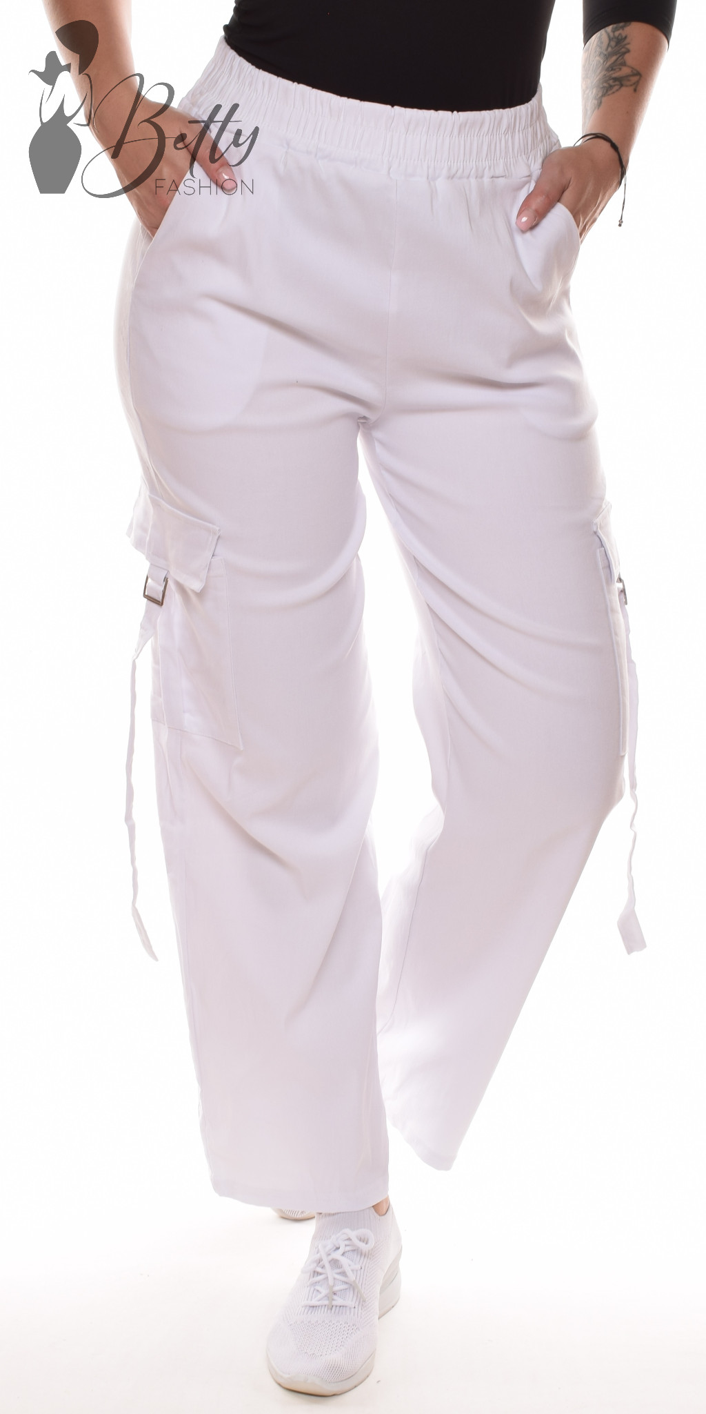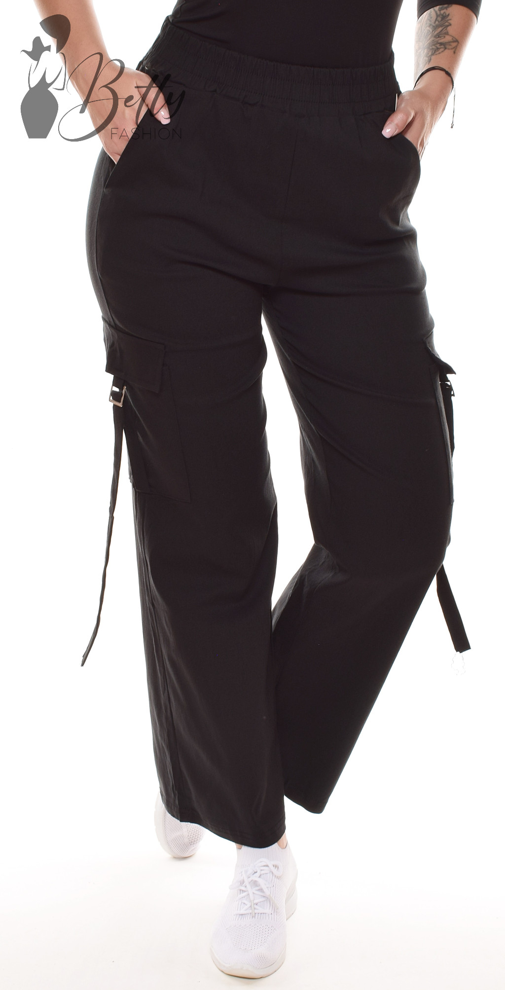• Egyszínű, két oldalt zsebes és oldal zsebes, bő szárú nadrág