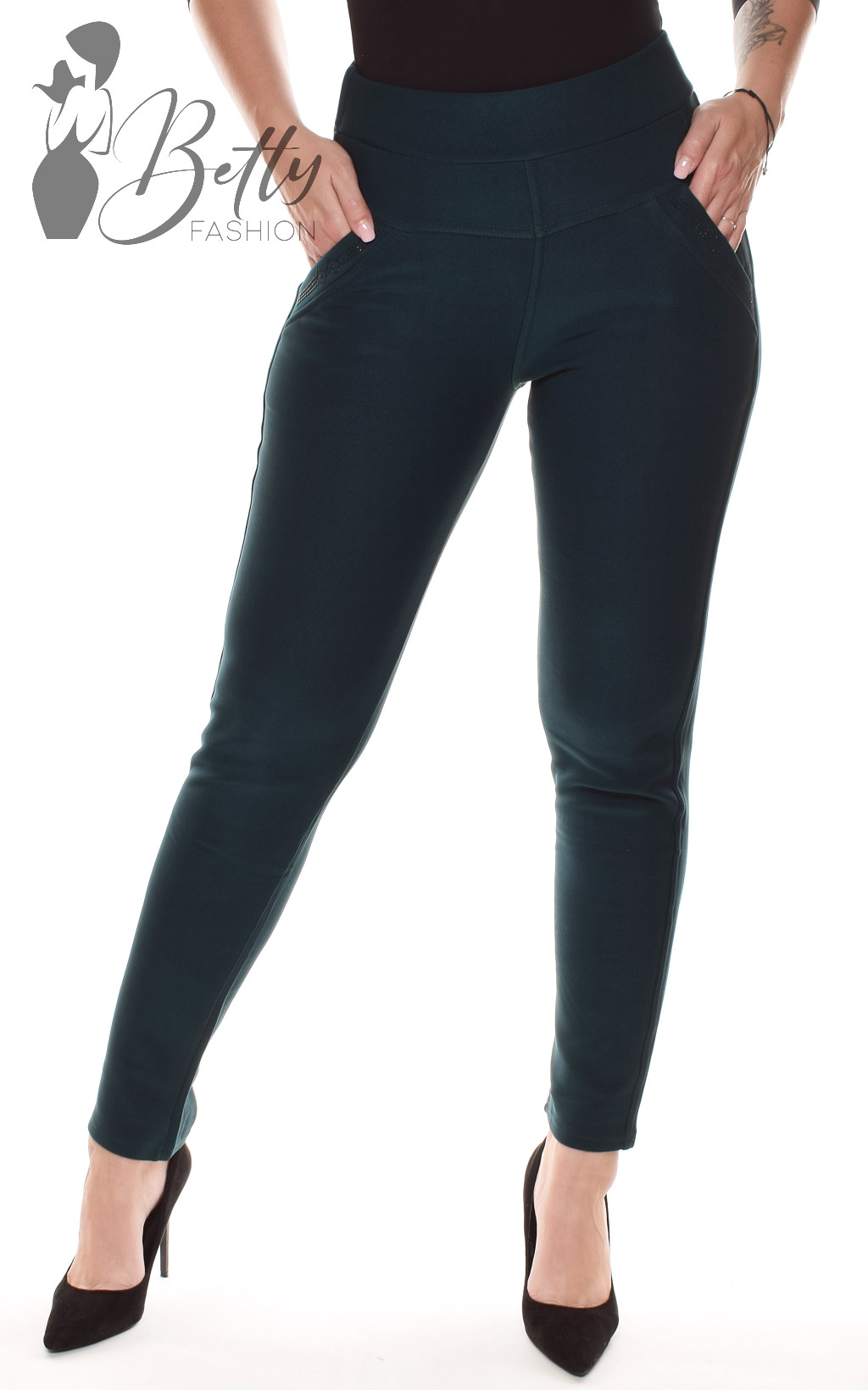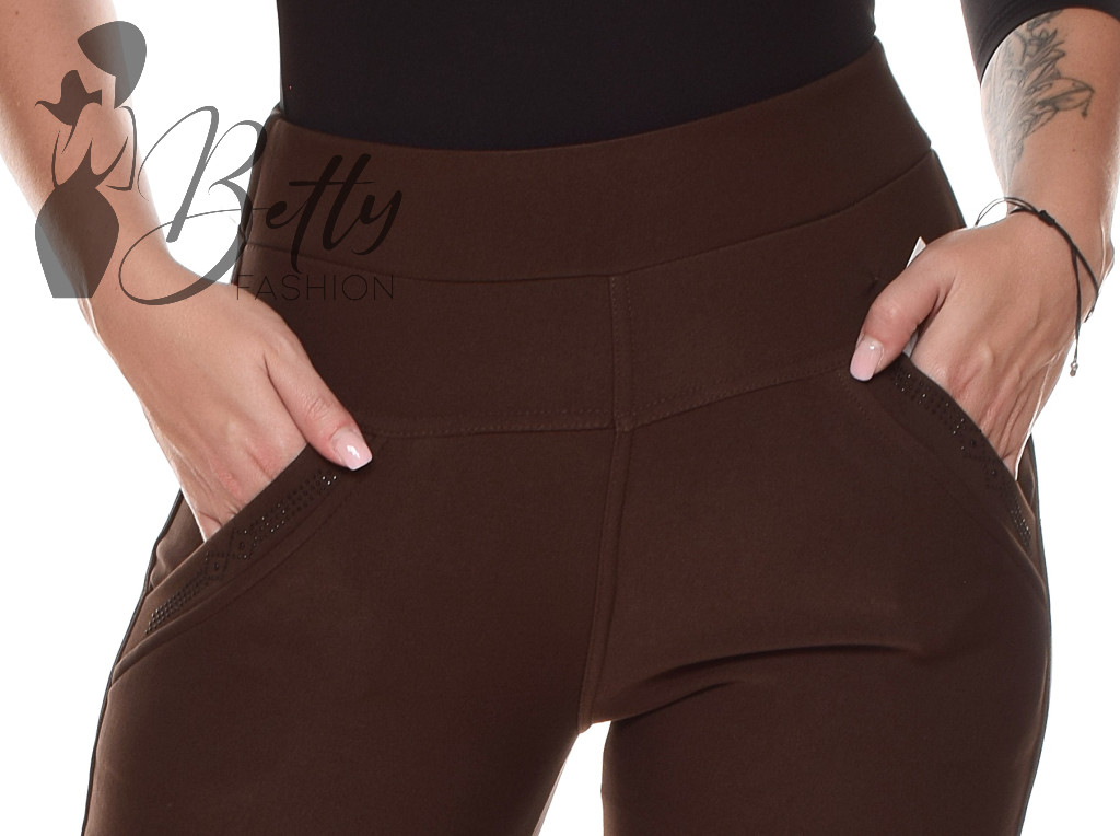 • Egyszínű, gumis derekú, elől francia zsebes és strasszköves, hátul zsebes nadrág
