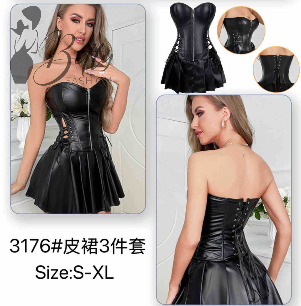 Fekete műbőr erotikus szett S, M, L, XL