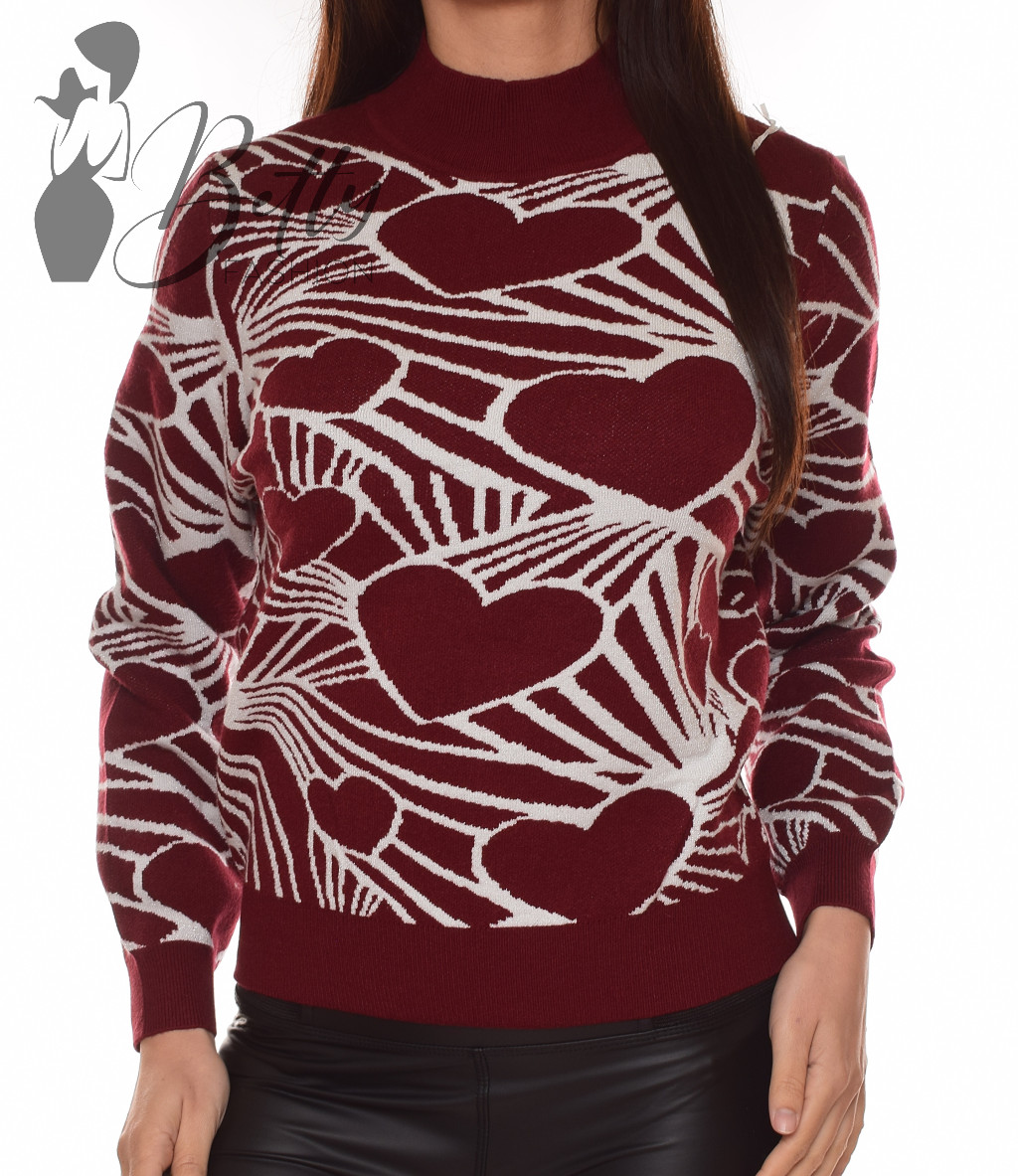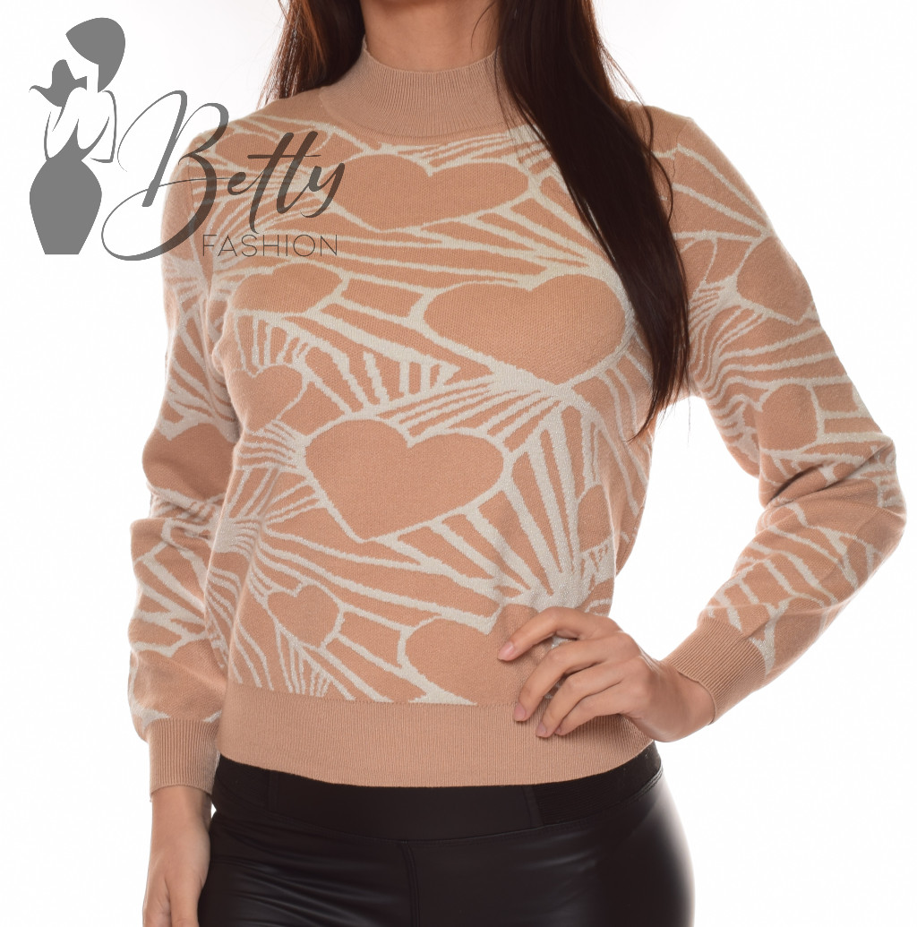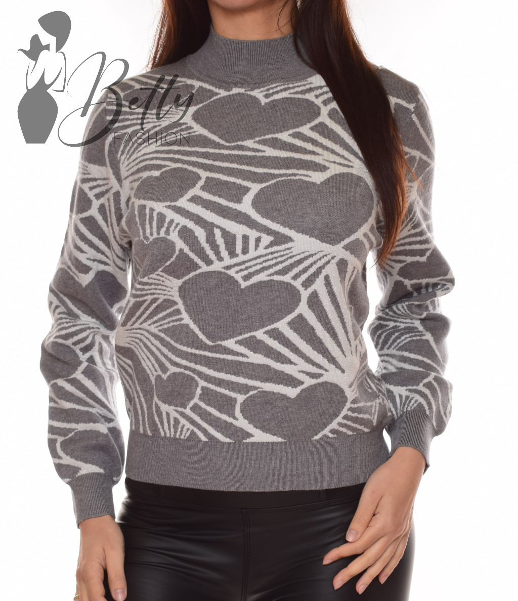 • Emelt nyakú, csillogó szívecske mintás, kötött pulóver