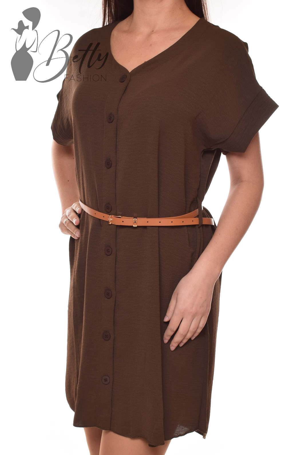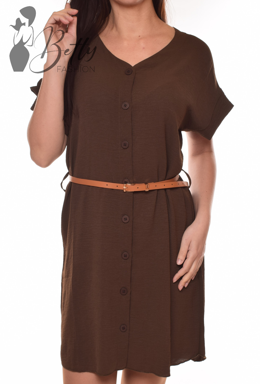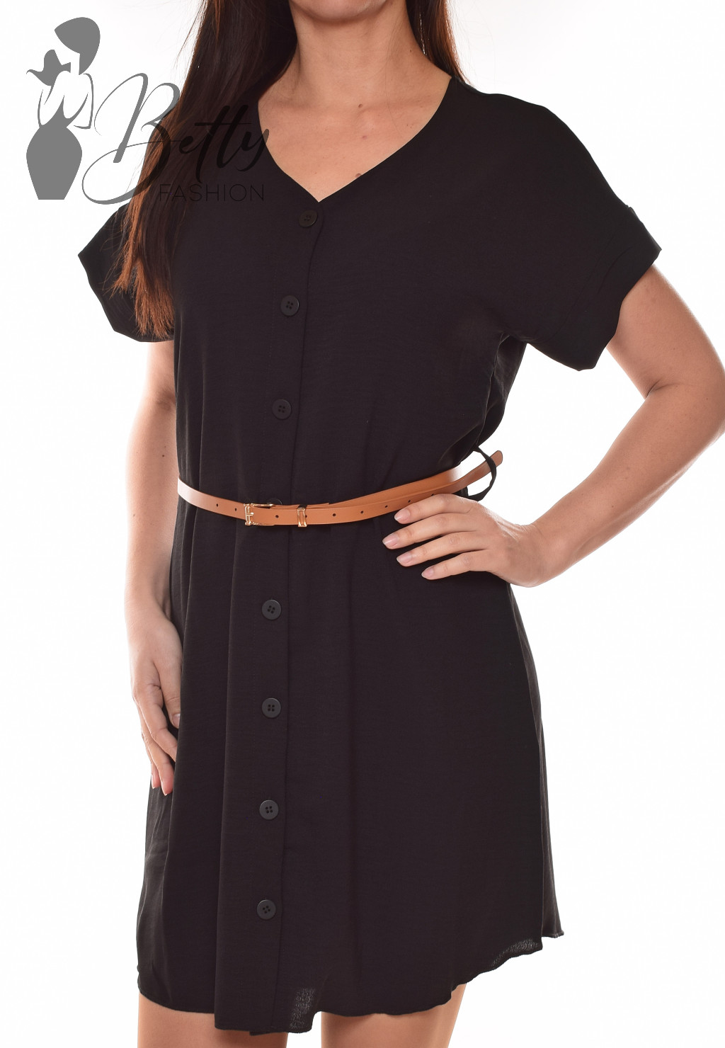 • Rövid ujjú, V-kivágású, gombdíszes ruha