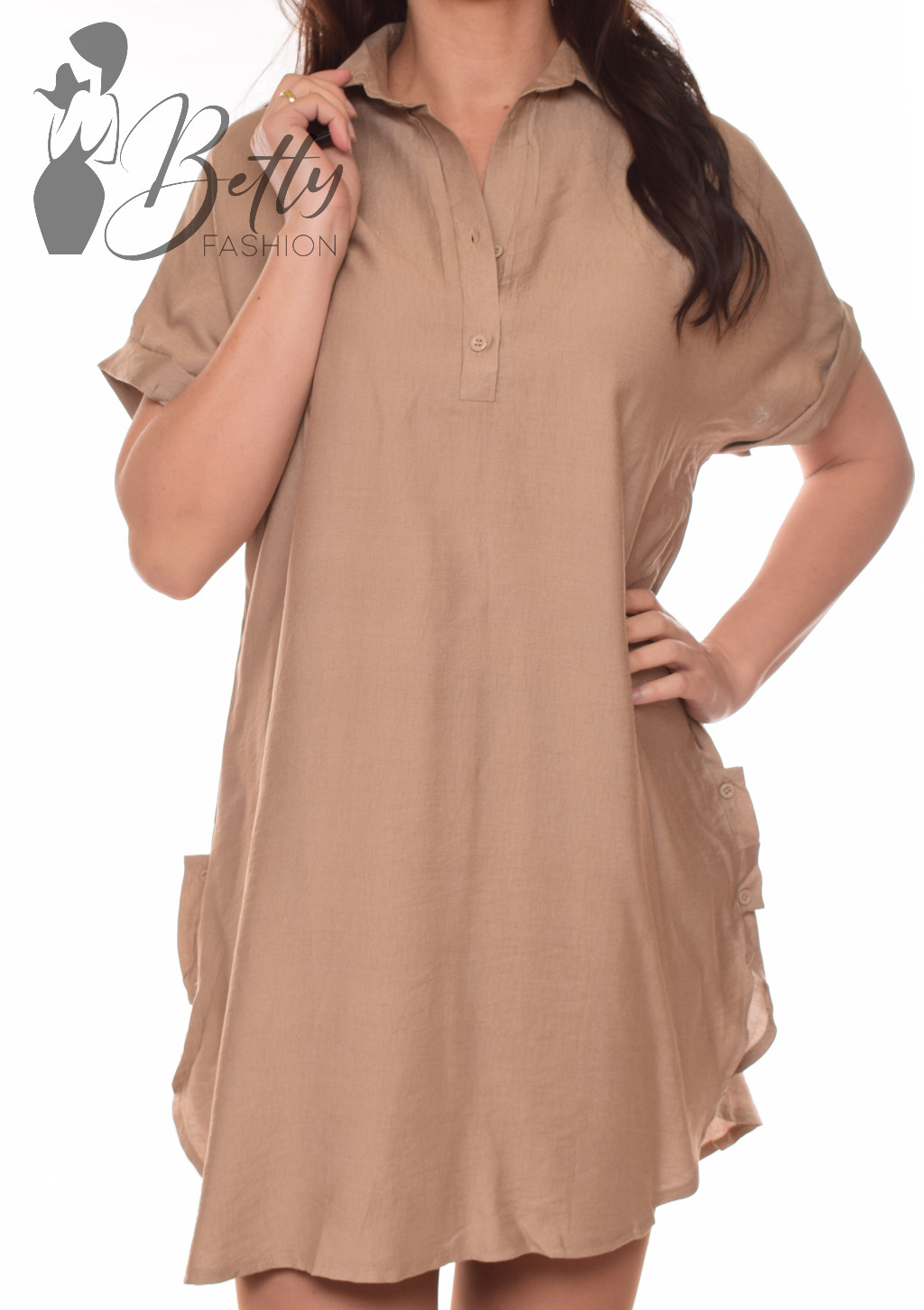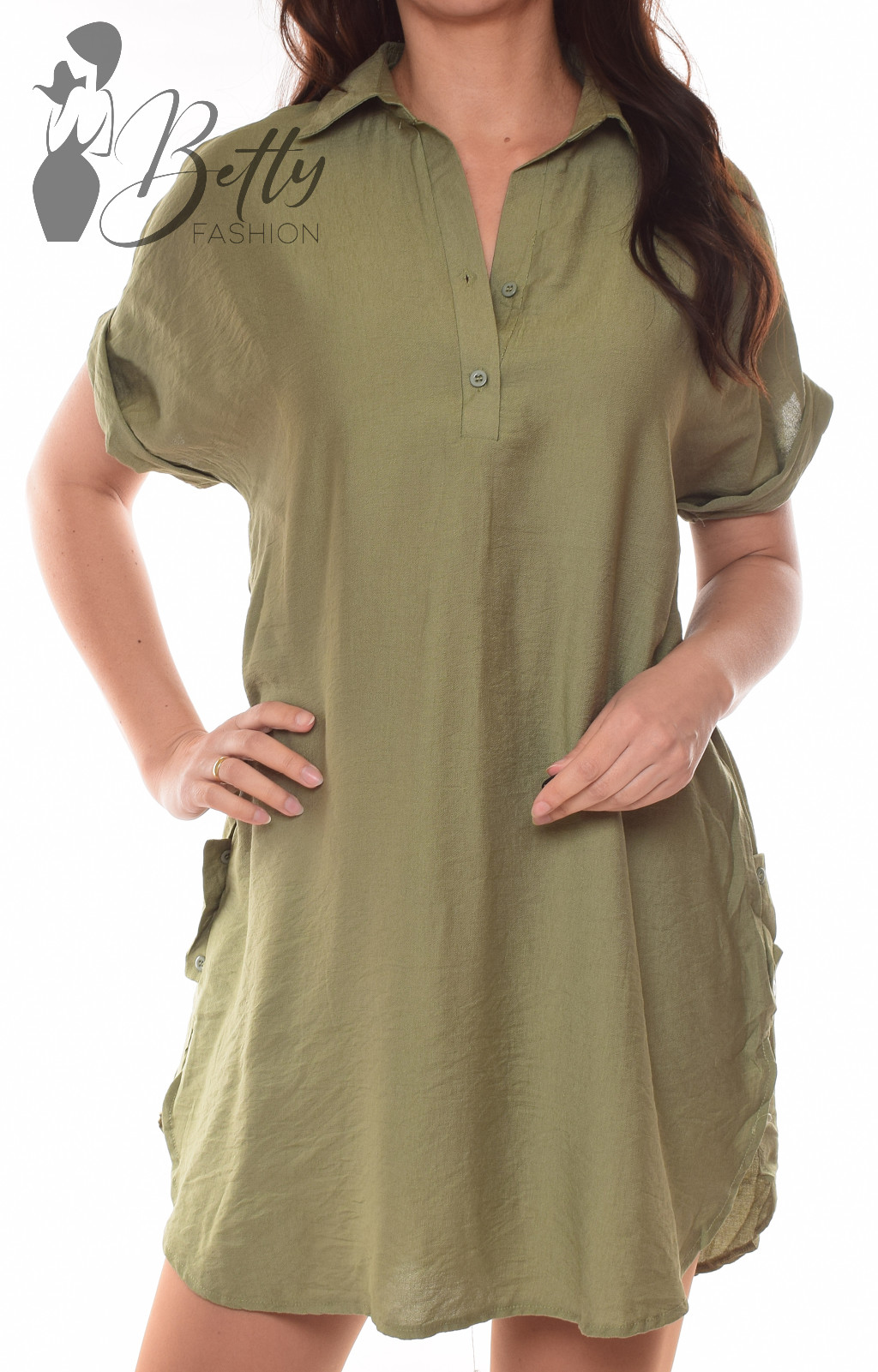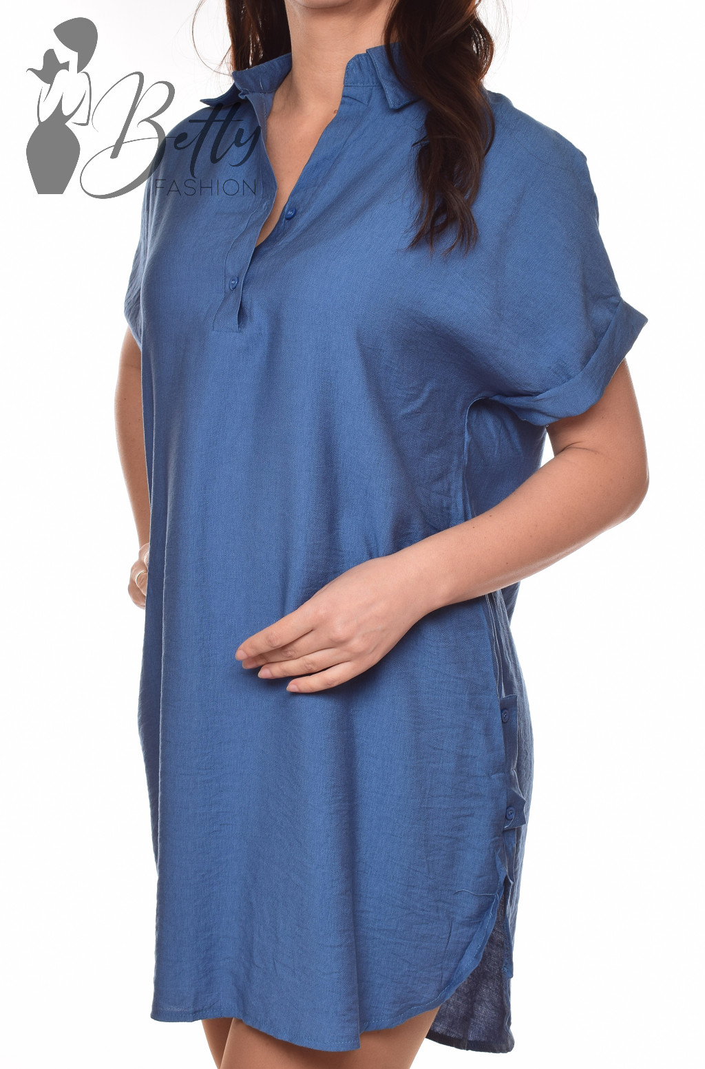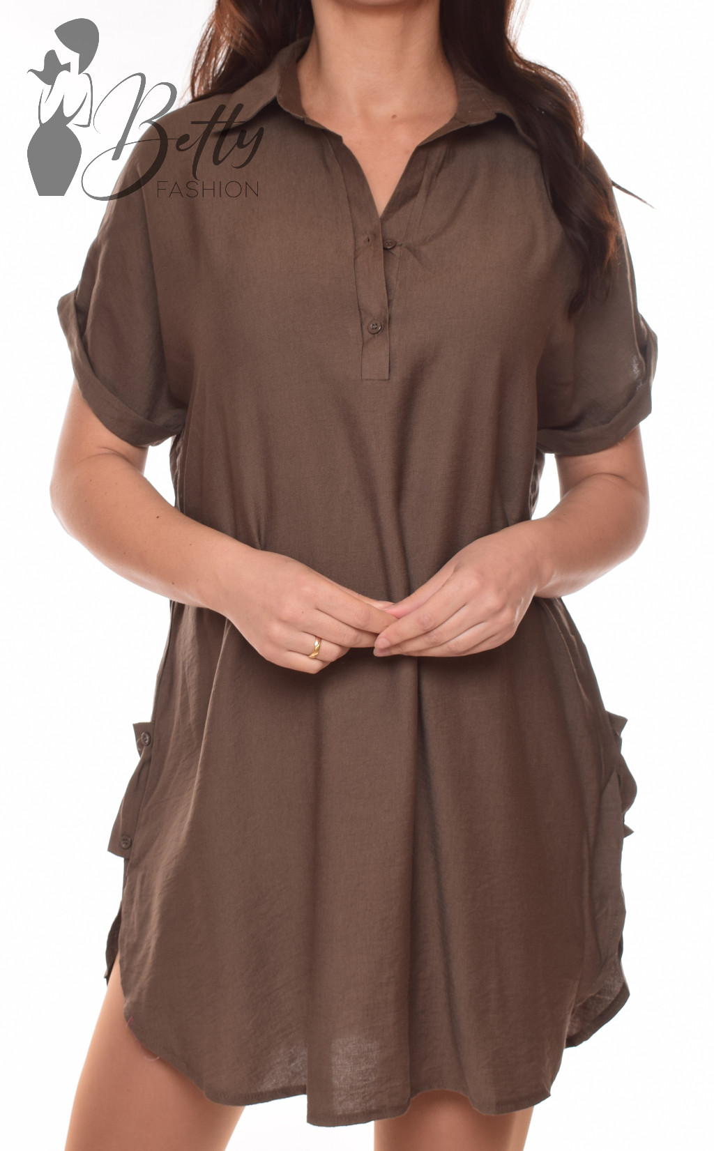 • Egyszínű, galléros, mellnél gombos, bővebb szabású ingruha