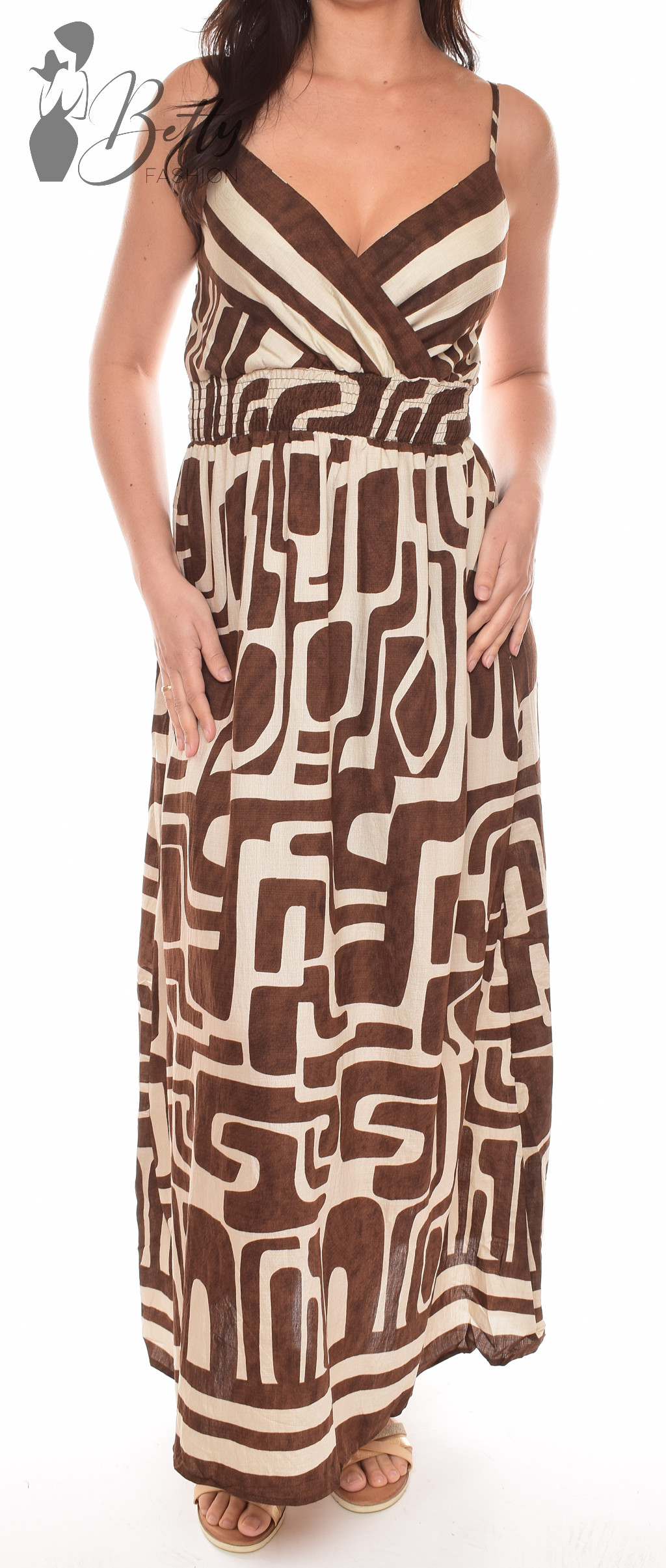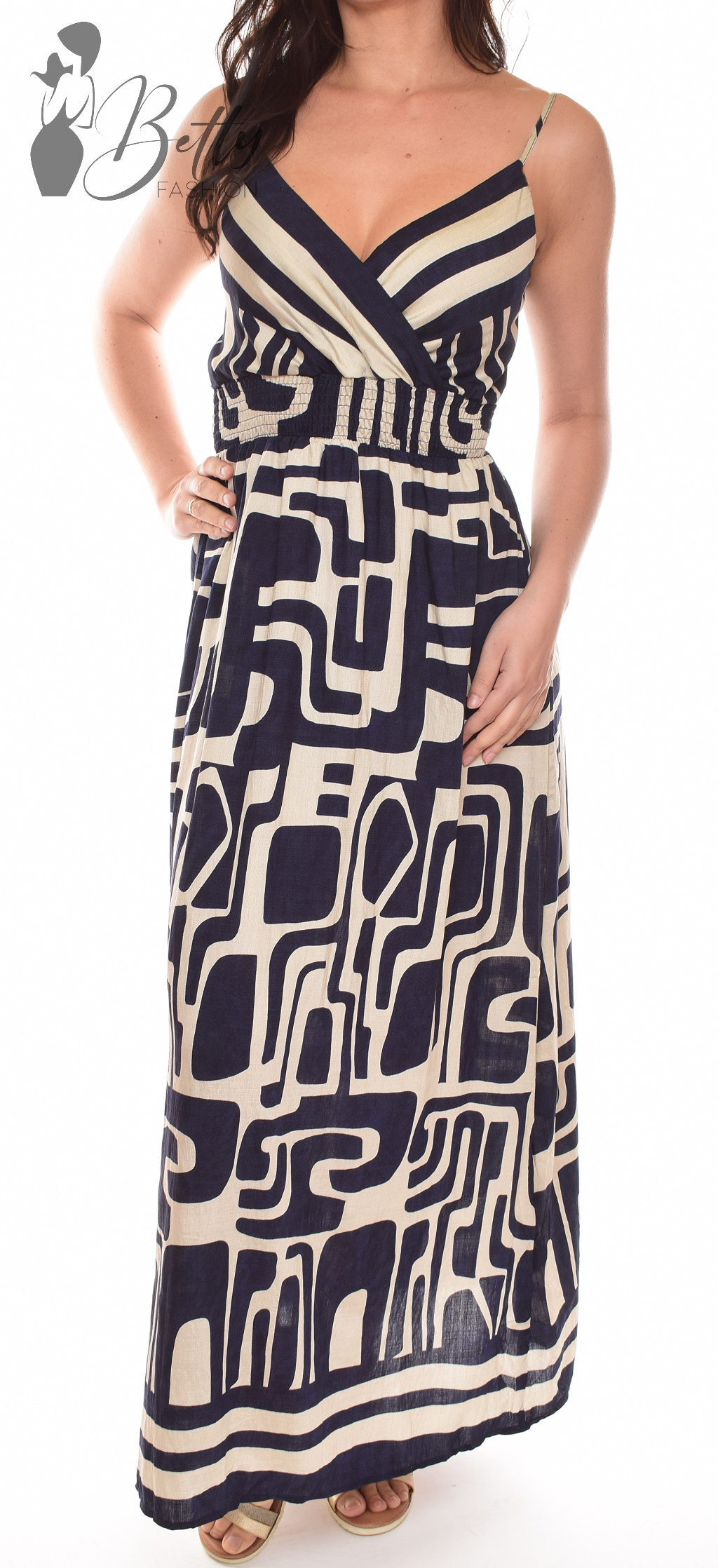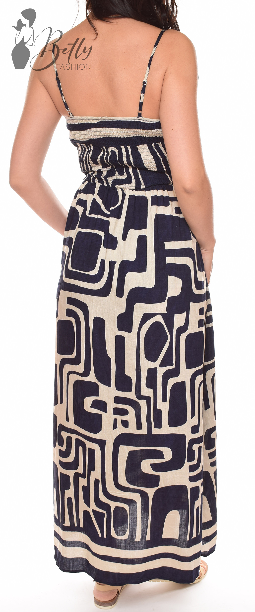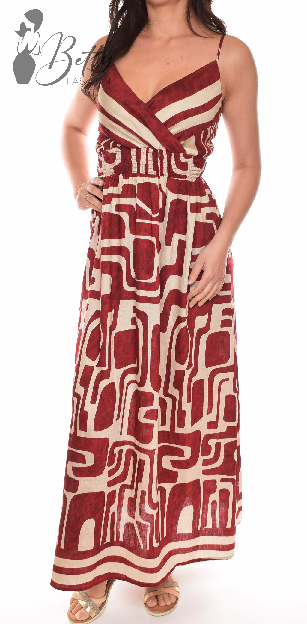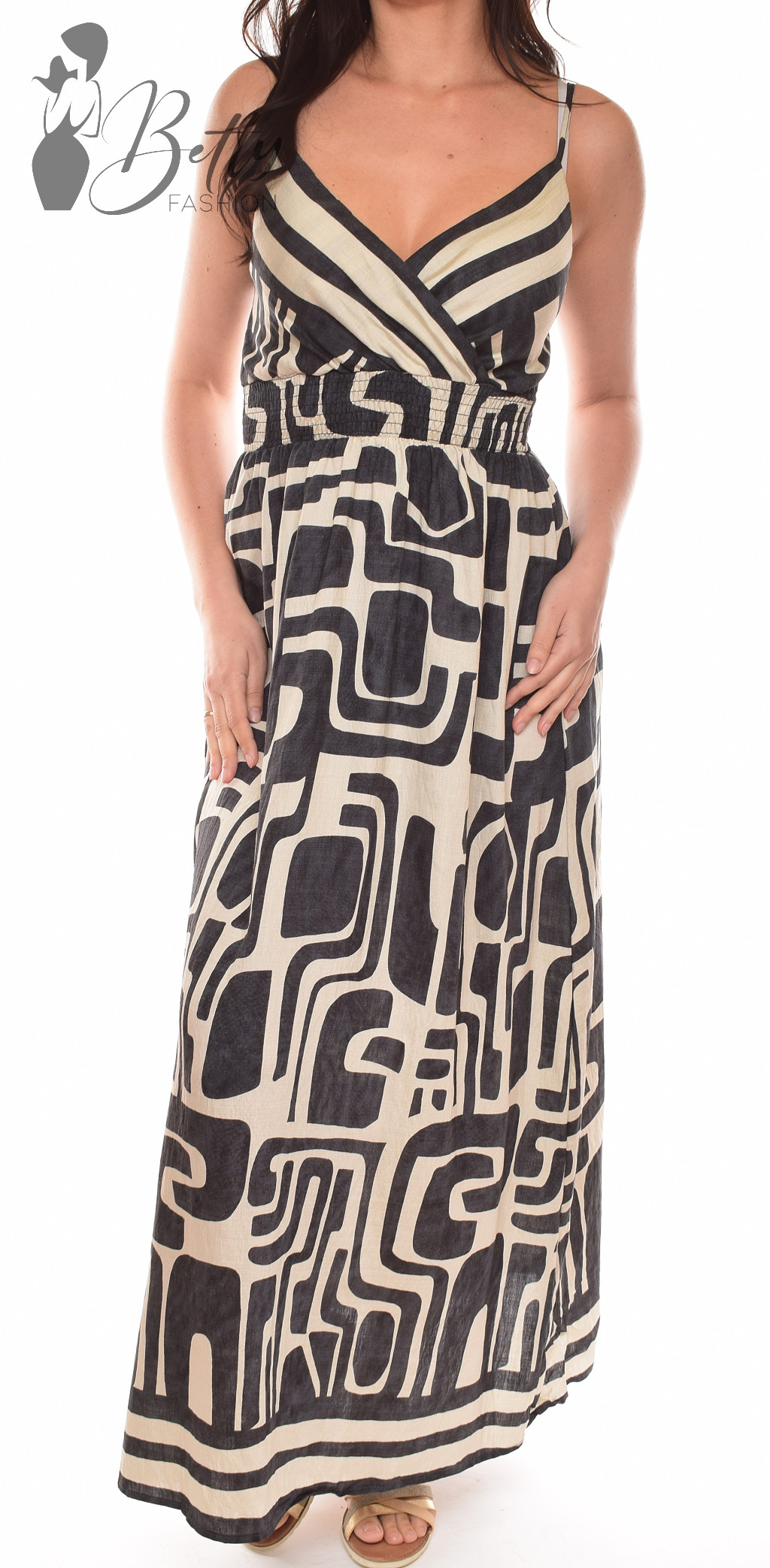 • Mellnél átlapolt és V-kivágású, állítható spagettipántos maxiruha