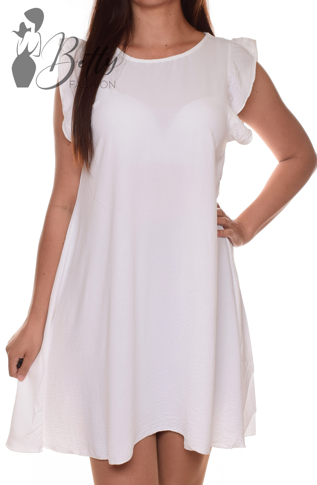 • Egyszínű, fodros ujjú, A-vonalú ruha