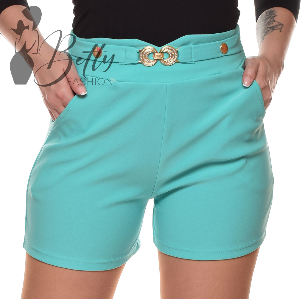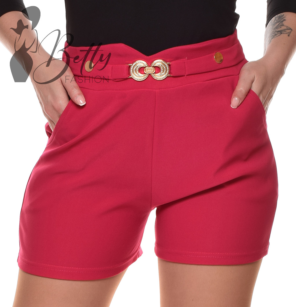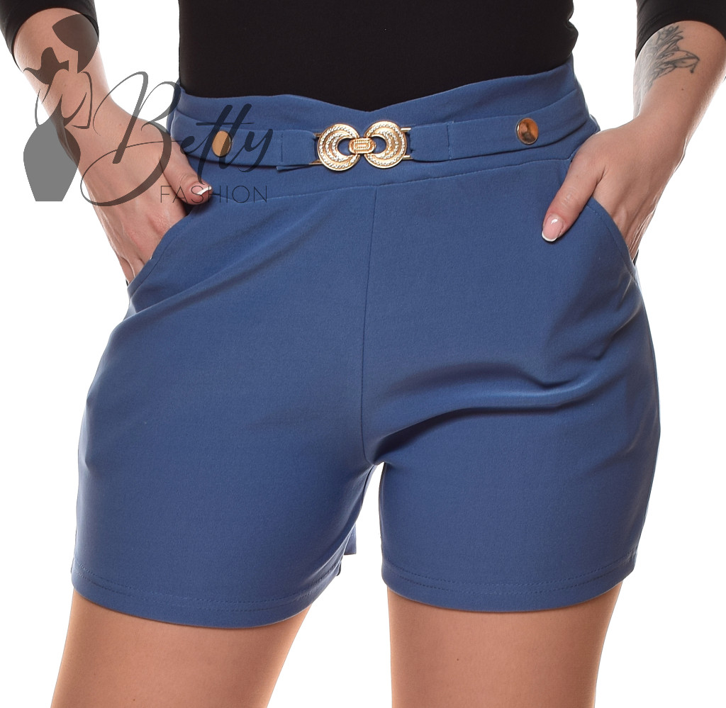 Egyszínű, gumis derekú, öves fémdíszes rövidnadrág