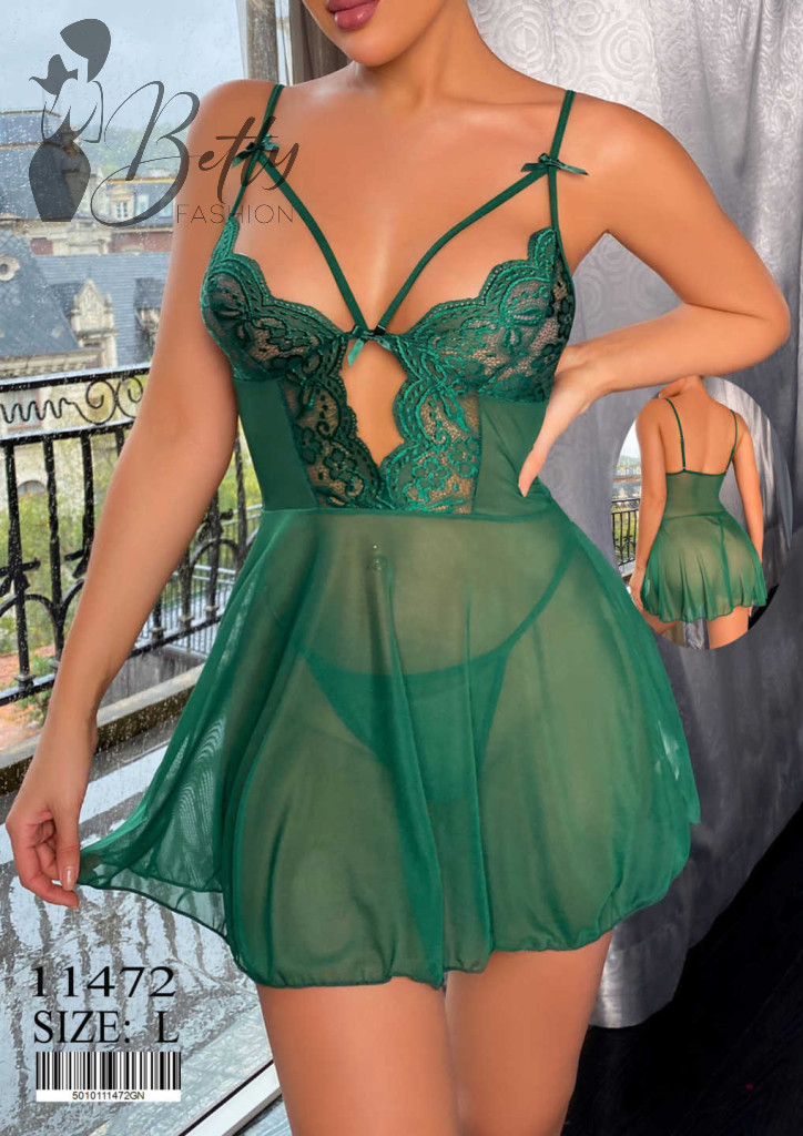 Smaragdzöld színű, csipke és tüll anyagú erotikus szett