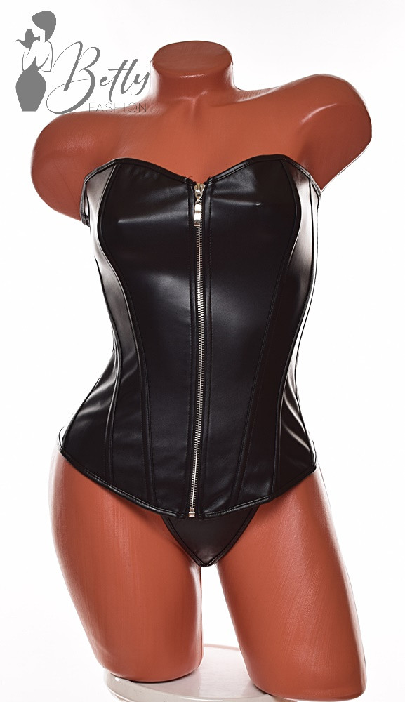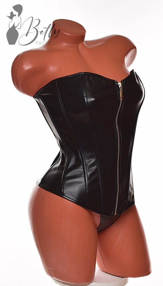 Elején cipzáros, hátul fűzős, merevítő szálas, műbőr fűző