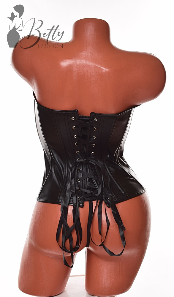 Fekete színű, műbőr fűző és tanga, erotikus szett - S, M, L, XL, 2XL, 3XL