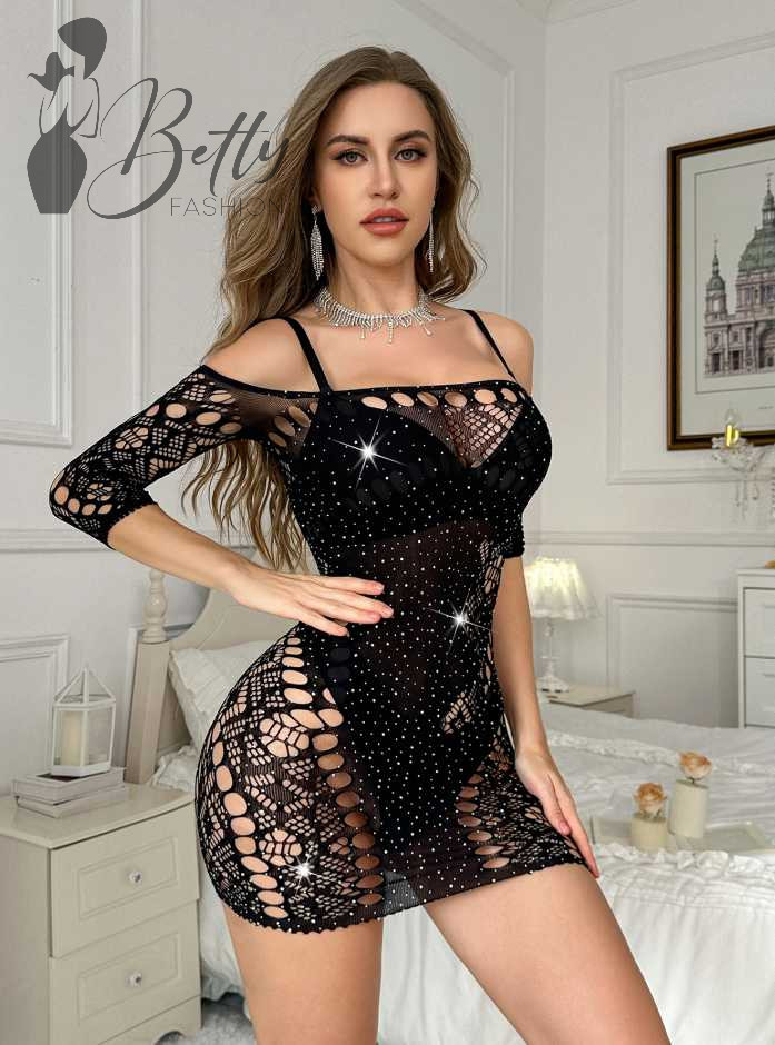 Fekete színű, apró strasszköves, erotikus ruha/testhatrisnya