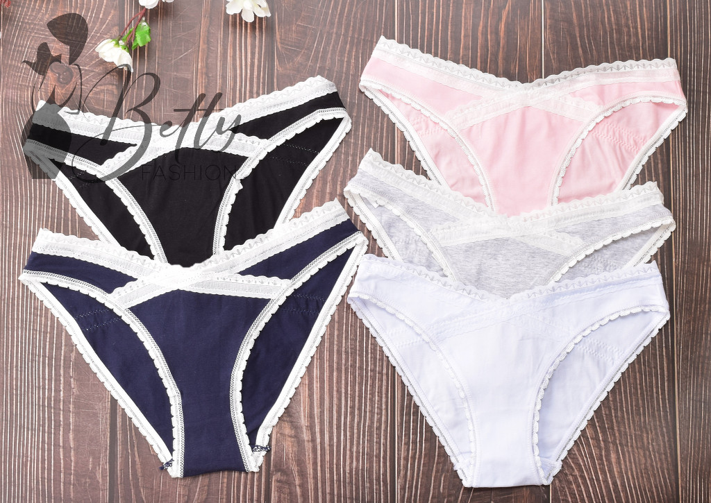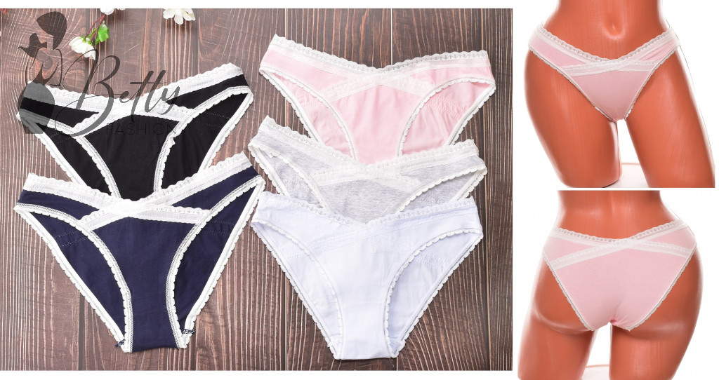 Pamut anyagú, derekán keresztben csipke szegélyes, normál fazonú bugyi