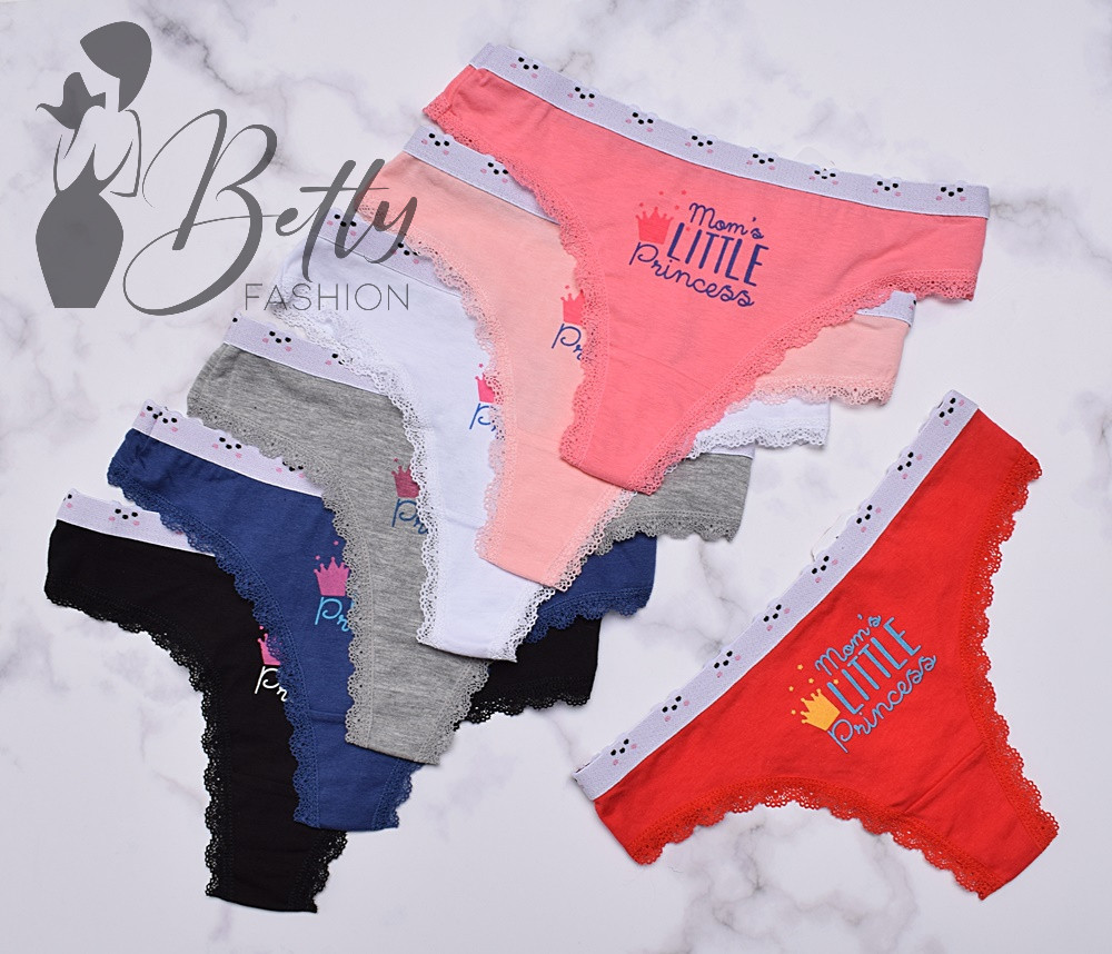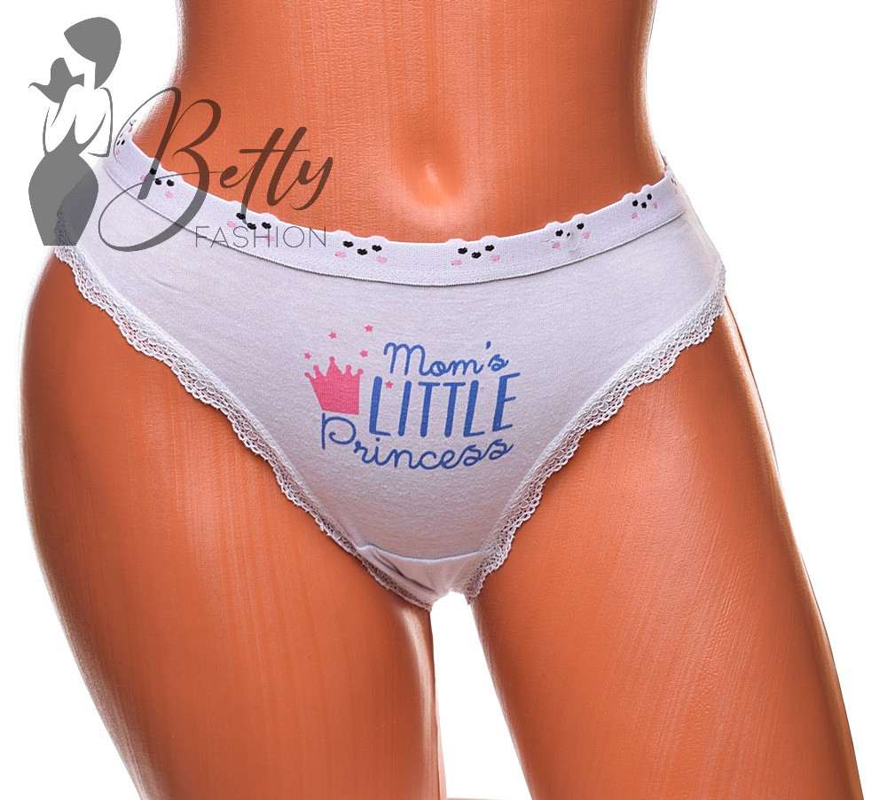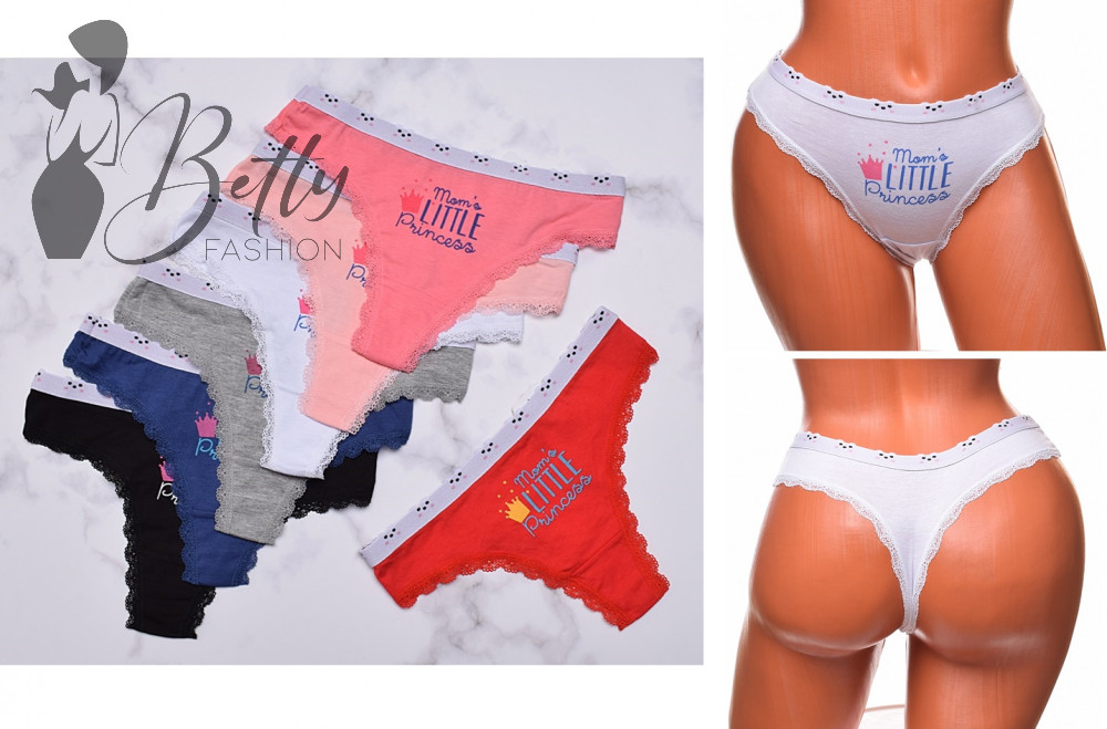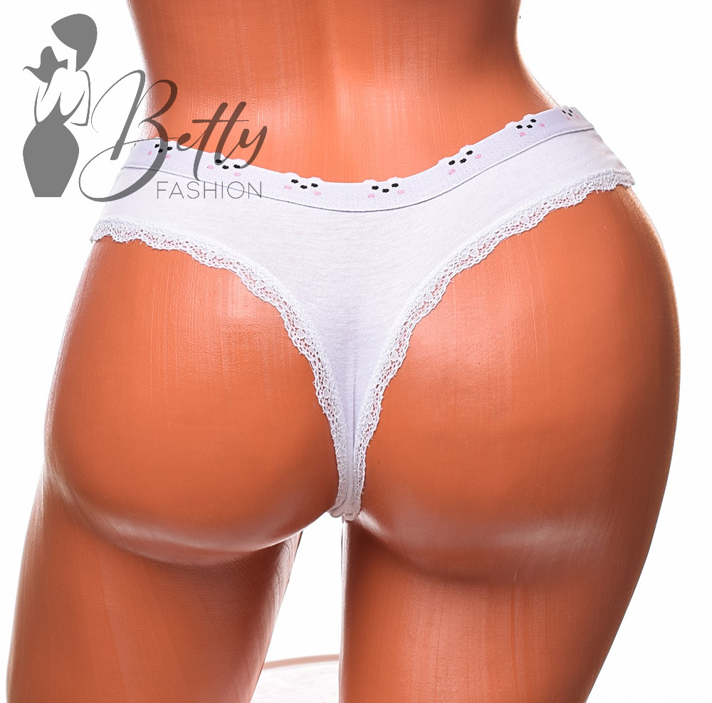 Derekán mintás, elején feliratos, csipkeszegélyes tanga