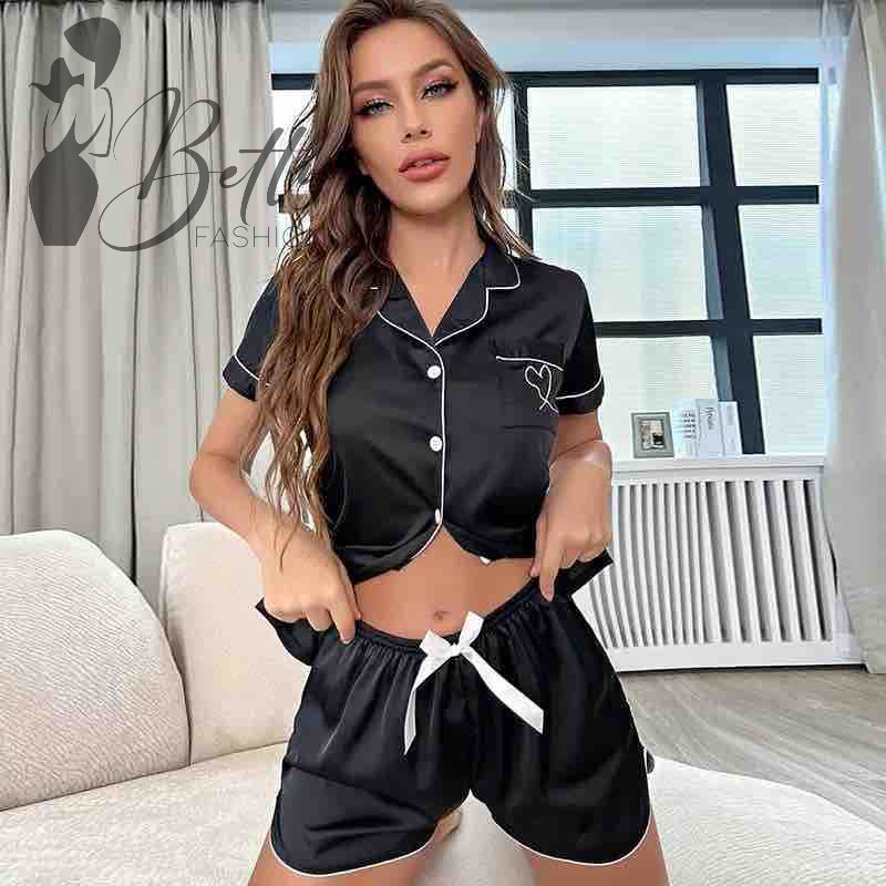 Fekete színű szatén pizsama szett