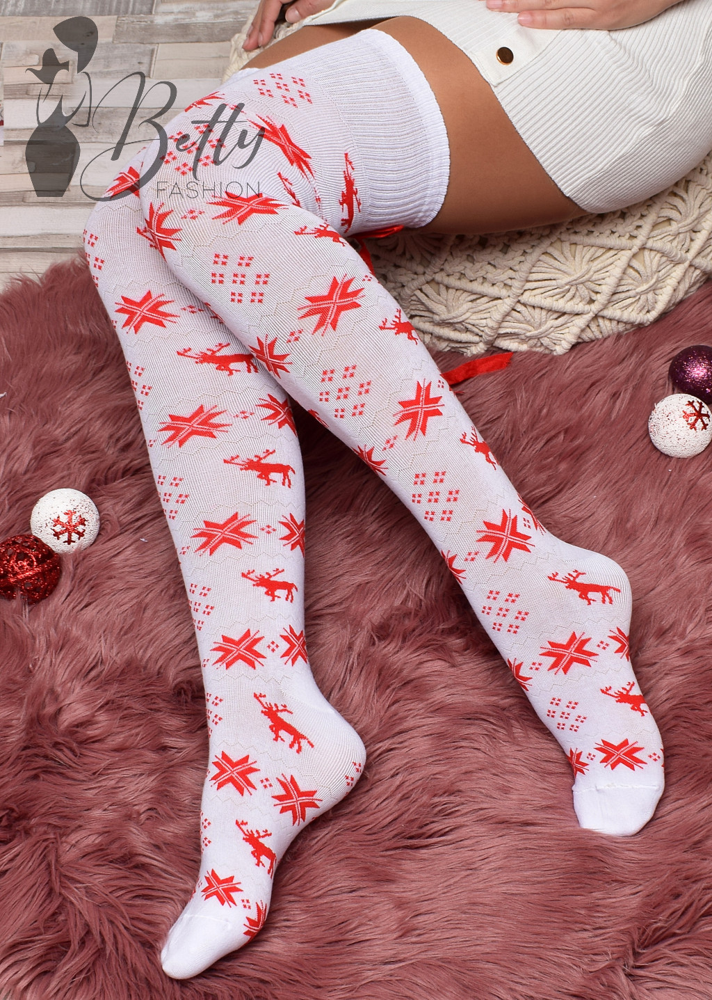 Hópehely és norvég mintás, hátul masnis combzokni