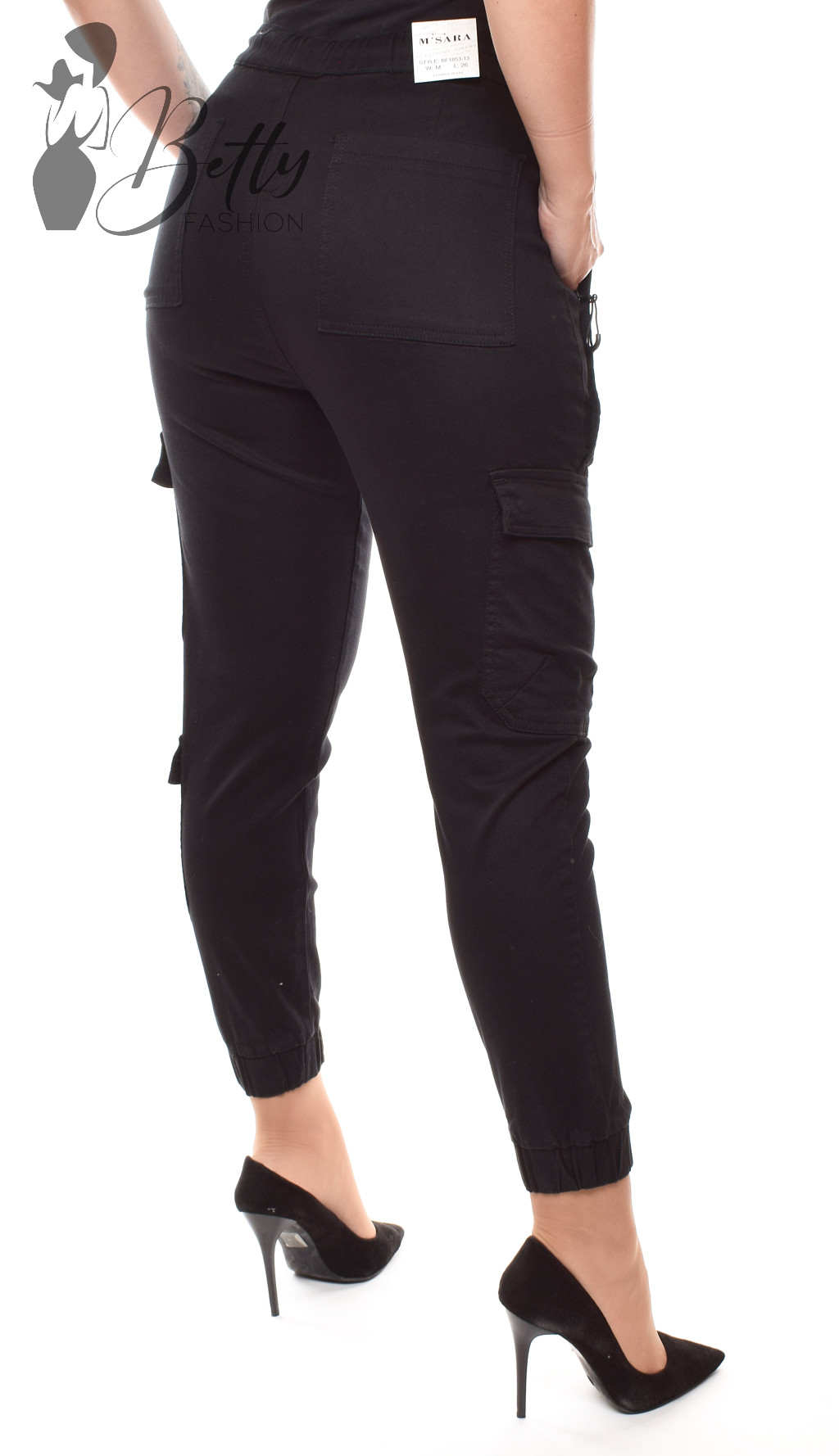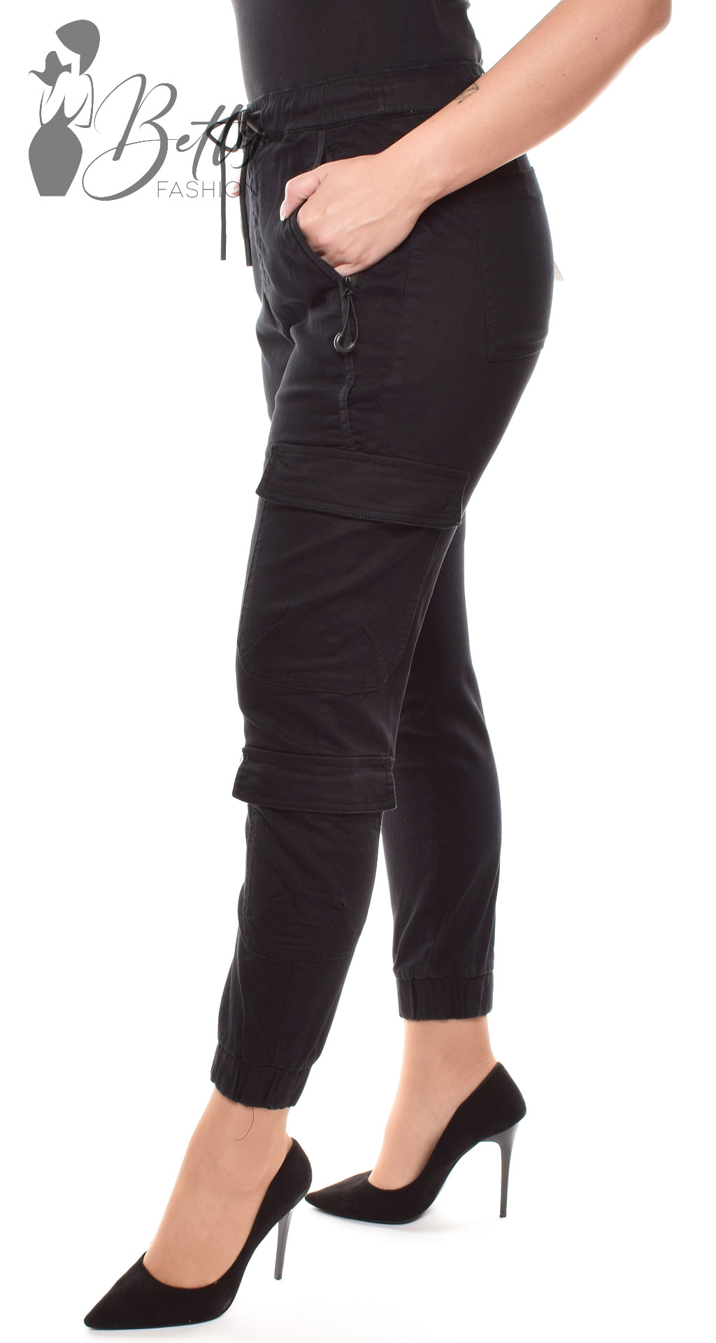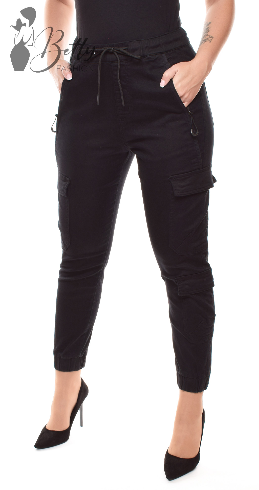 Fekete színű, oldalzsebes cargo nadrág XS, S, M, L, XL