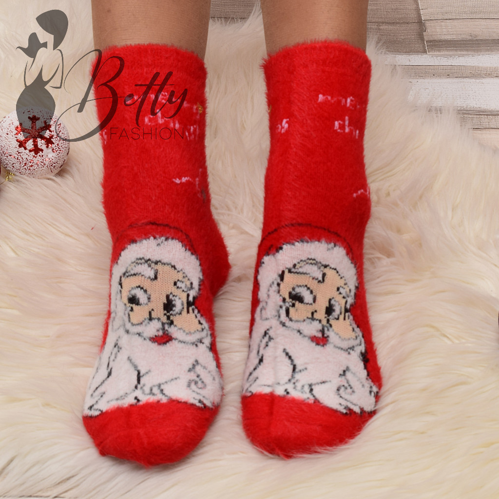 Karácsonyi mintás, meleg, szőrmés anyagú zokni